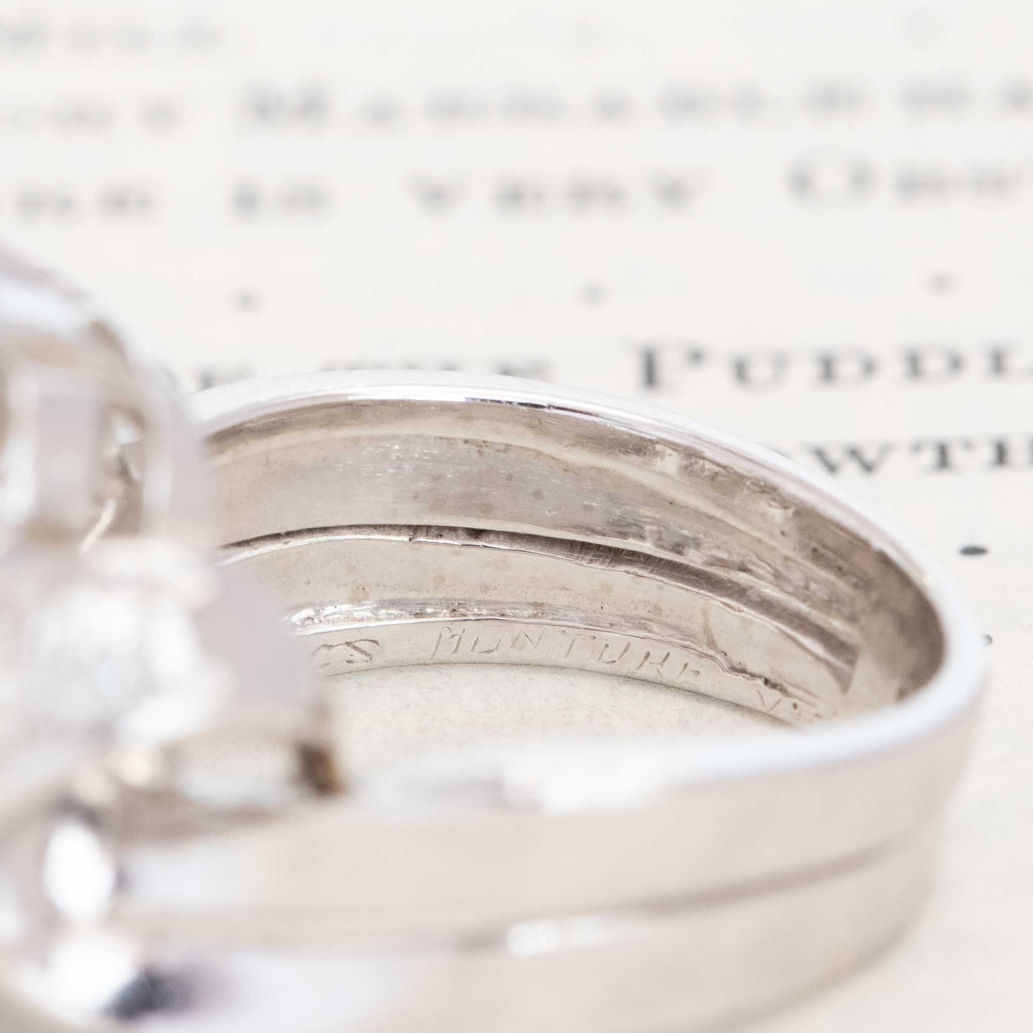 Monture translates literally as “mount,” referring to the setting of the ring, but in the world of vintage/antique jewelry, the word means so much more. During the 20th century, esteemed jewelry houses such as Cartier and Van Cleef & Arpels would create custom-commissioned rings for their select clientele, which they designated as “Monture”. We’ve come across a few of these babies in our time, each one incredibly unique and reflective of the delicious craftsmanship and style of the respective jewelry houses. This beautiful old mine-cut ring is a Monture by Van Cleef & Arpels, centering on a chunky old mine and an equally beautiful Old European cut, flanked by this twisty, ribbon-like motif studded with more old cuts. It is almost like a princess ring in its presence and scale, offering a romantic design with the charm and character of old-cut diamonds. It is such a special piece; we are quite fond of her.