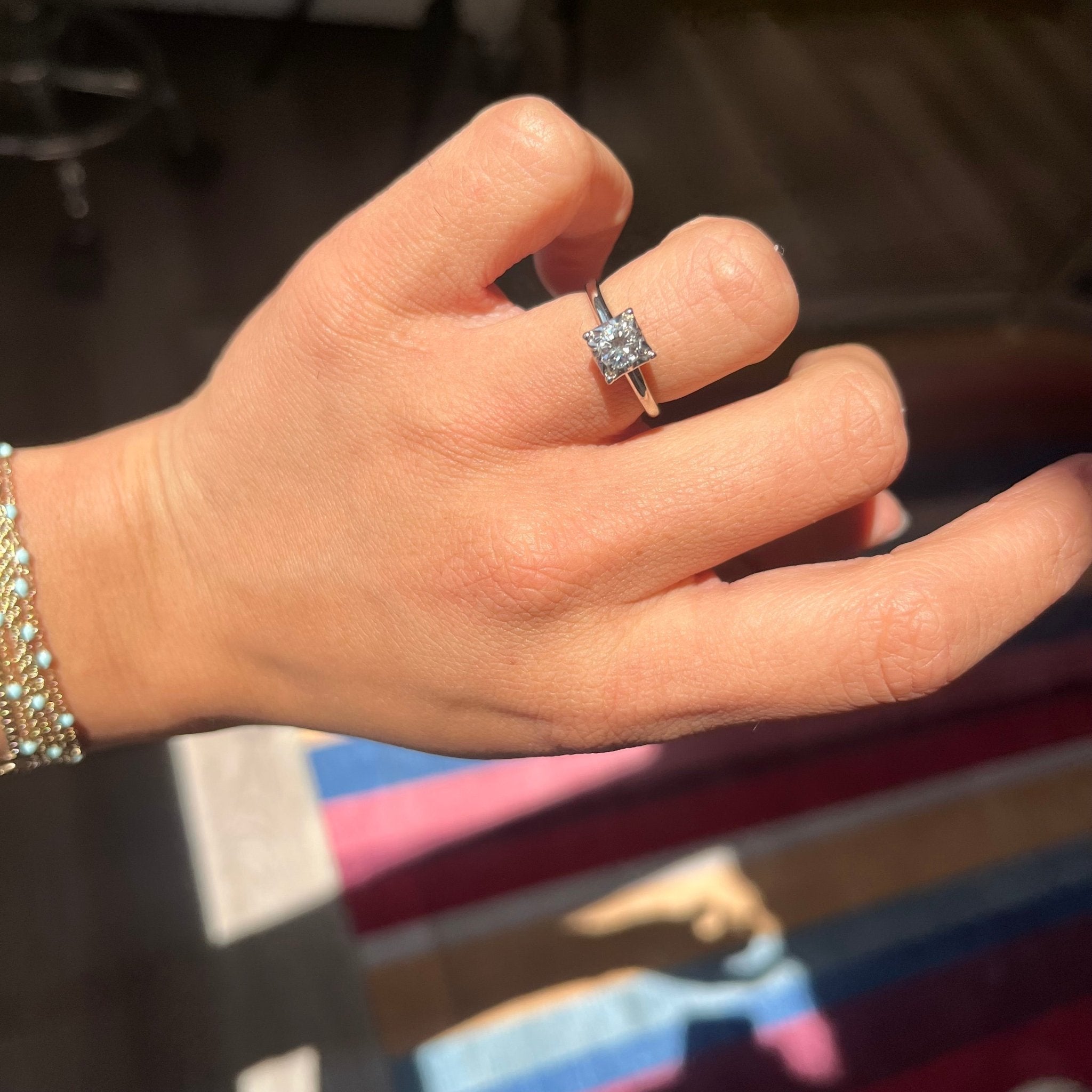 - Diamond is estimated to be .38cts, J color & VS2 clarity. GIA Standards