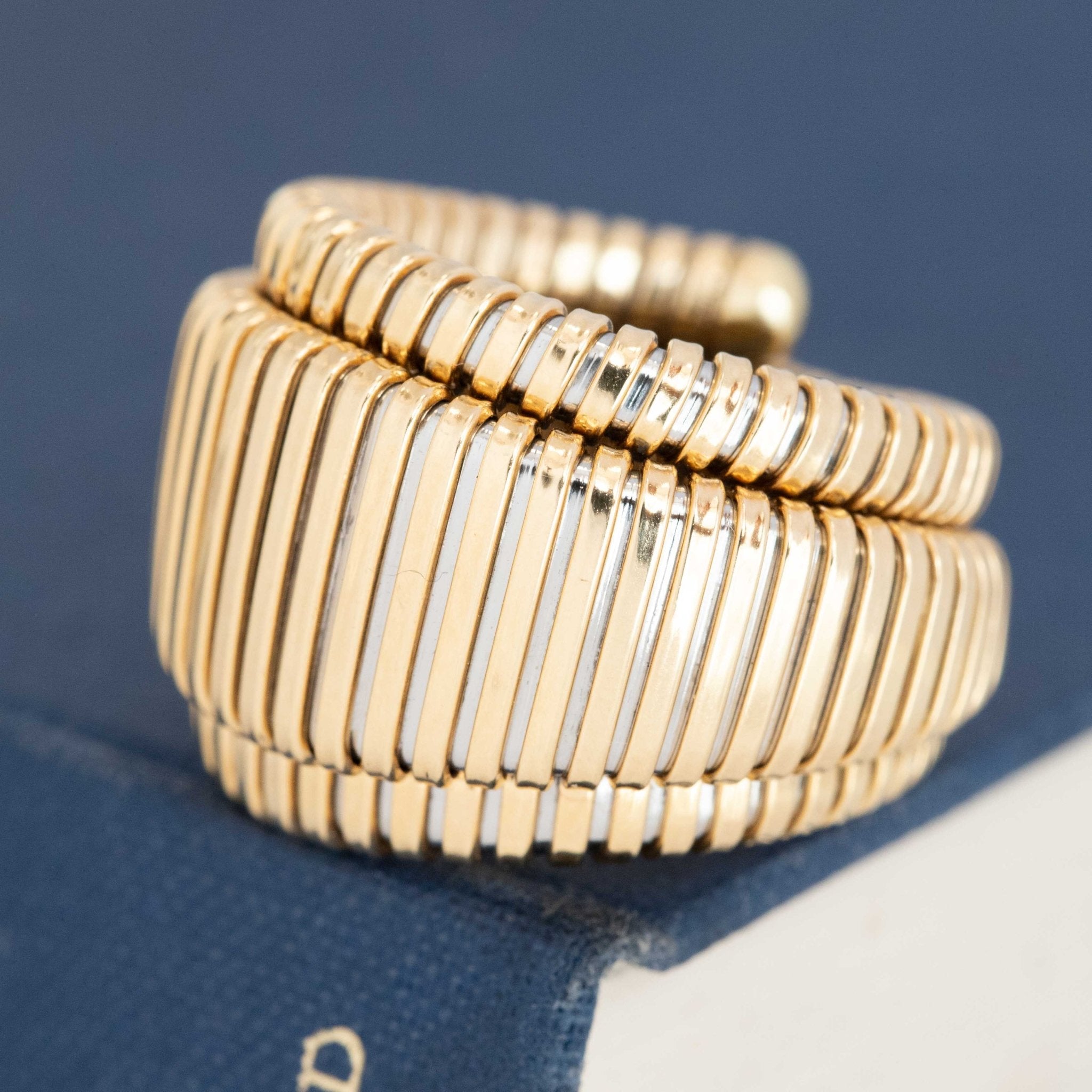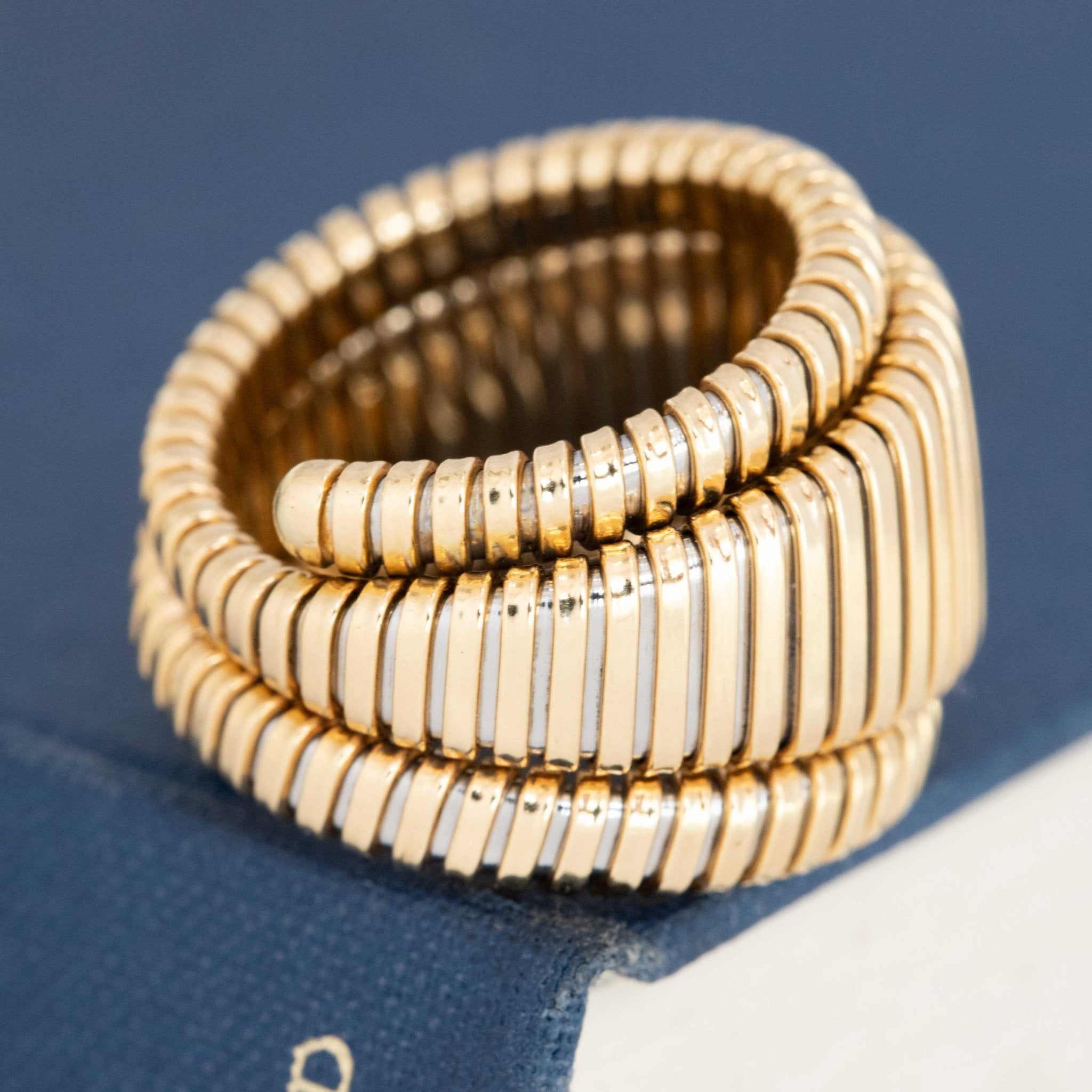 A fabulous Italian-made tubogas ring, with a bold make and the most delicious buttery feel when worn. The tubogas is incredibly made and doesn’t pinch or pull - it is flexible and comfortable, the type of chunky ring that you’d want to wear all day.