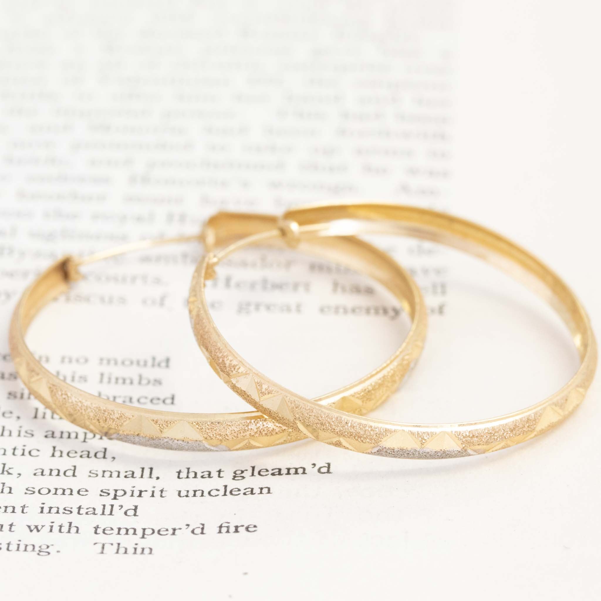 Vintage Two-Tone Textured Hoop Earrings
