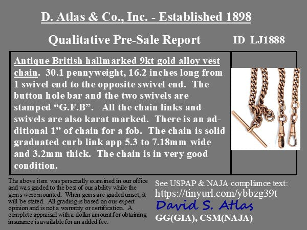 Victorian Curb Link Necklace/Watch Chain, 16.2"