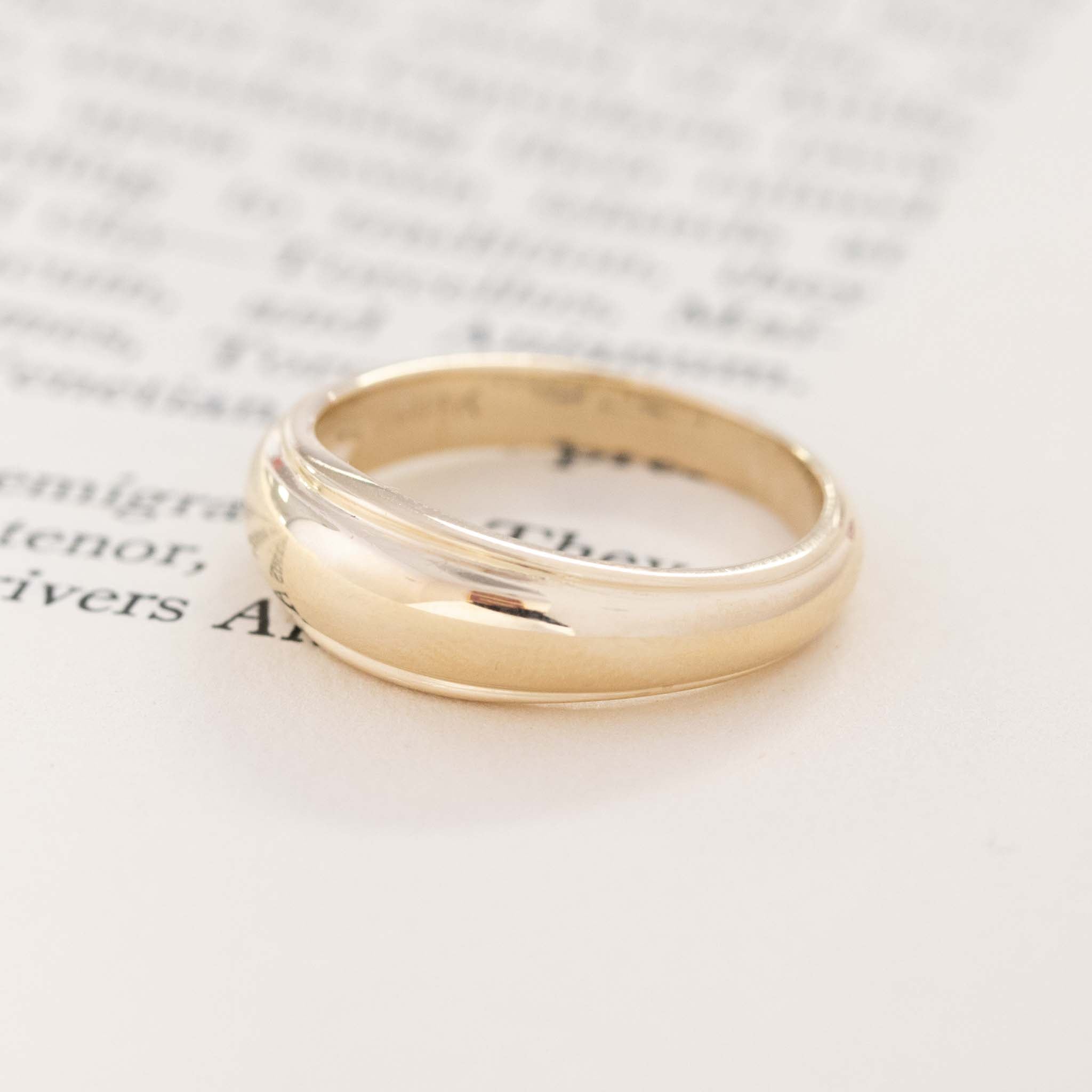 A classic yellow gold band - the perfect accessory for everyday wear, and one of our favorite jewelry staples ever. This one has a triple-row effect to it, giving you big finger coverage and spread! It also gets slightly wider across the top of the finger, and begins to taper down as it moves towards the bottom of the shank. It’s manufactured by Orange Blossom, a company that began in the early 1900’s and was known for their ornate details and designs! In the late 90’s, all of the company’s molds were destroyed when the company was sold, making their vintage pieces quiet the fun find.