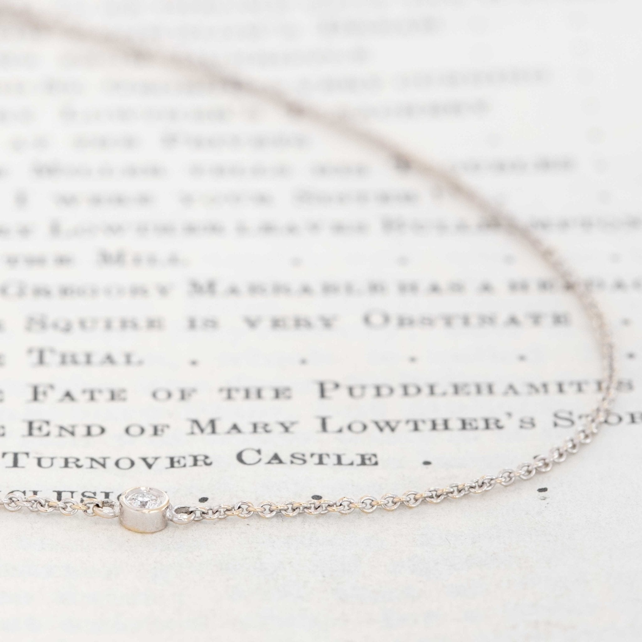 Delicate and feminine, this platinum station necklace features 3 small round diamonds that add a subtle hint of sparkle to an otherwise sleek, simple platinum chain. Perfect worn solo or layered!