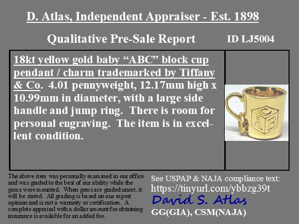 Vintage ABC Baby Cup Gold Charm, by Tiffany & Co.
