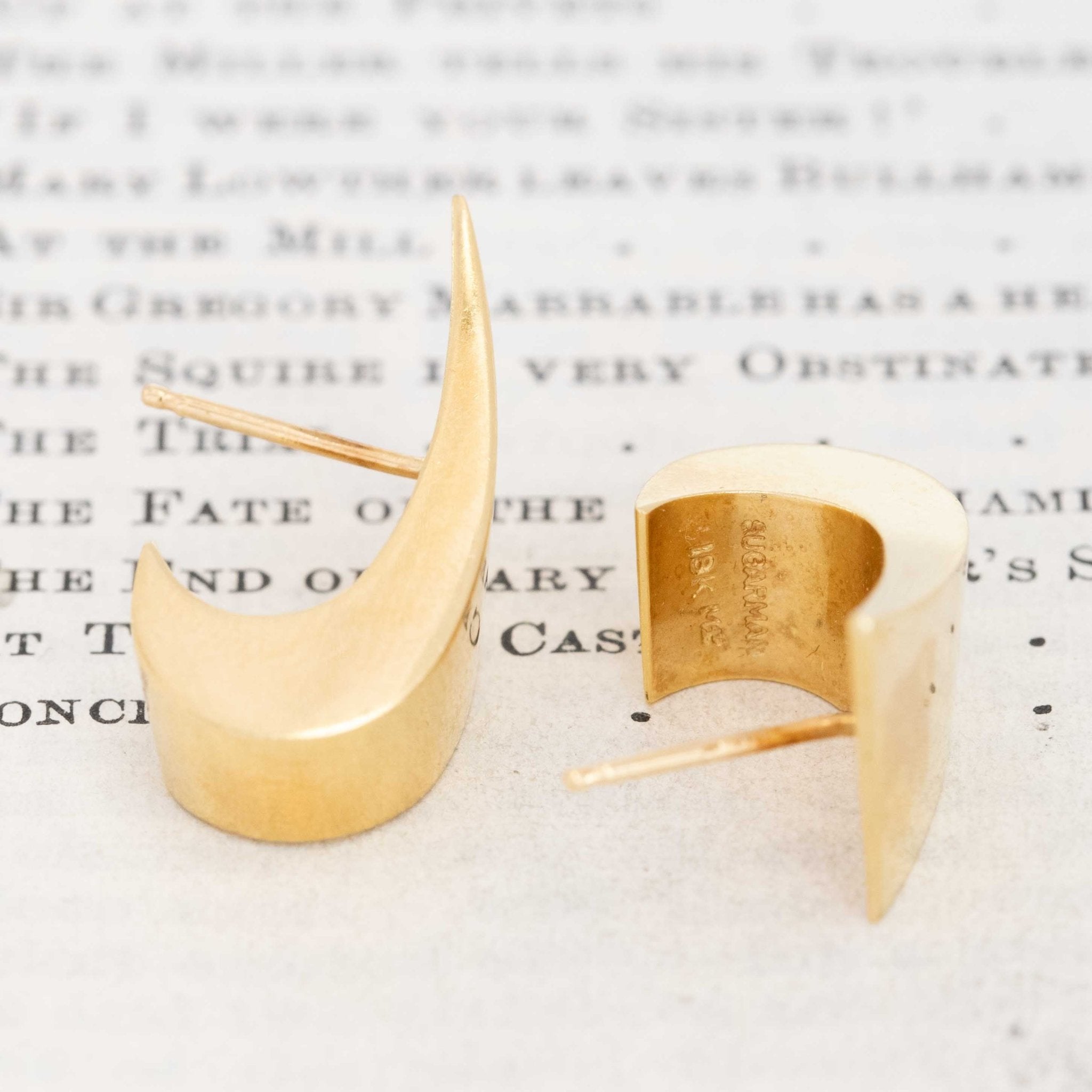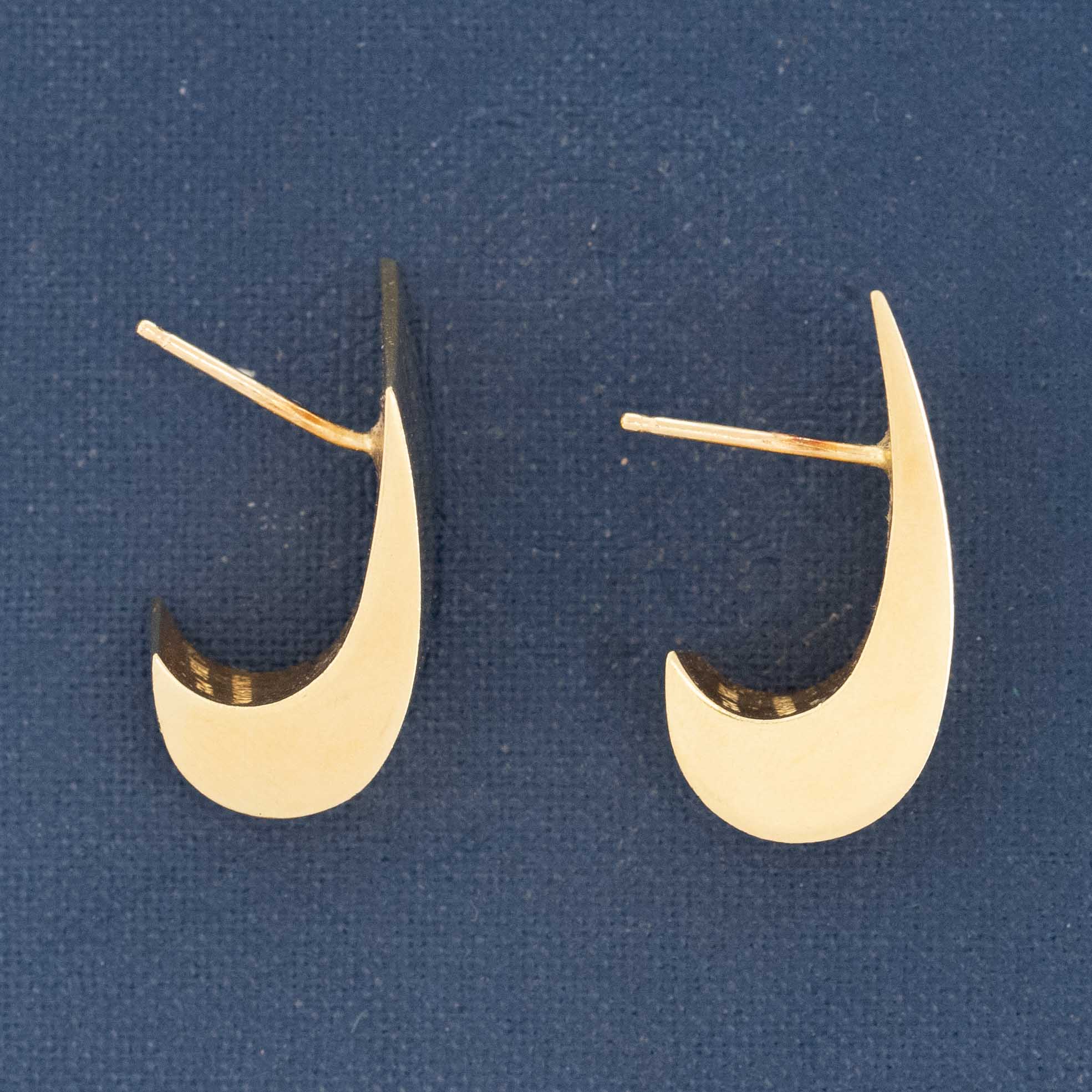 Chunky yet lightweight vintage earrings, a wonderful example of the linear, geometric styling of the 50s and 60s. Looks like folded gold. and the perfect pop of gold on the lobes!