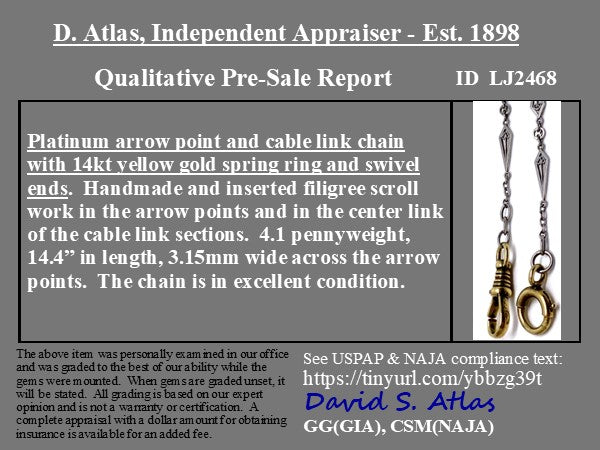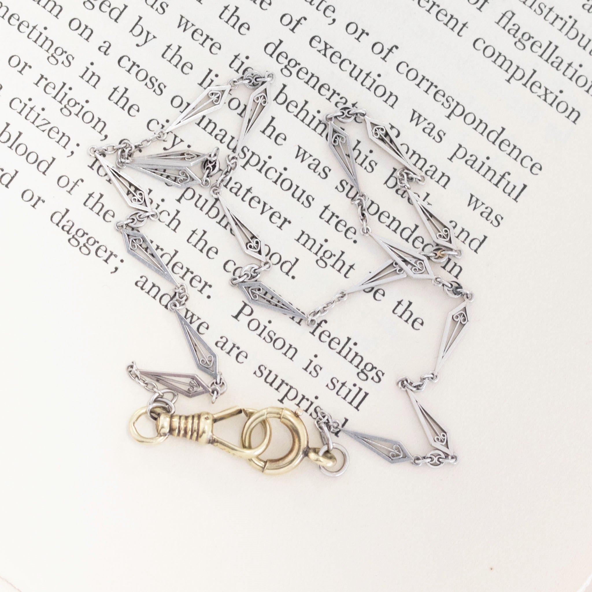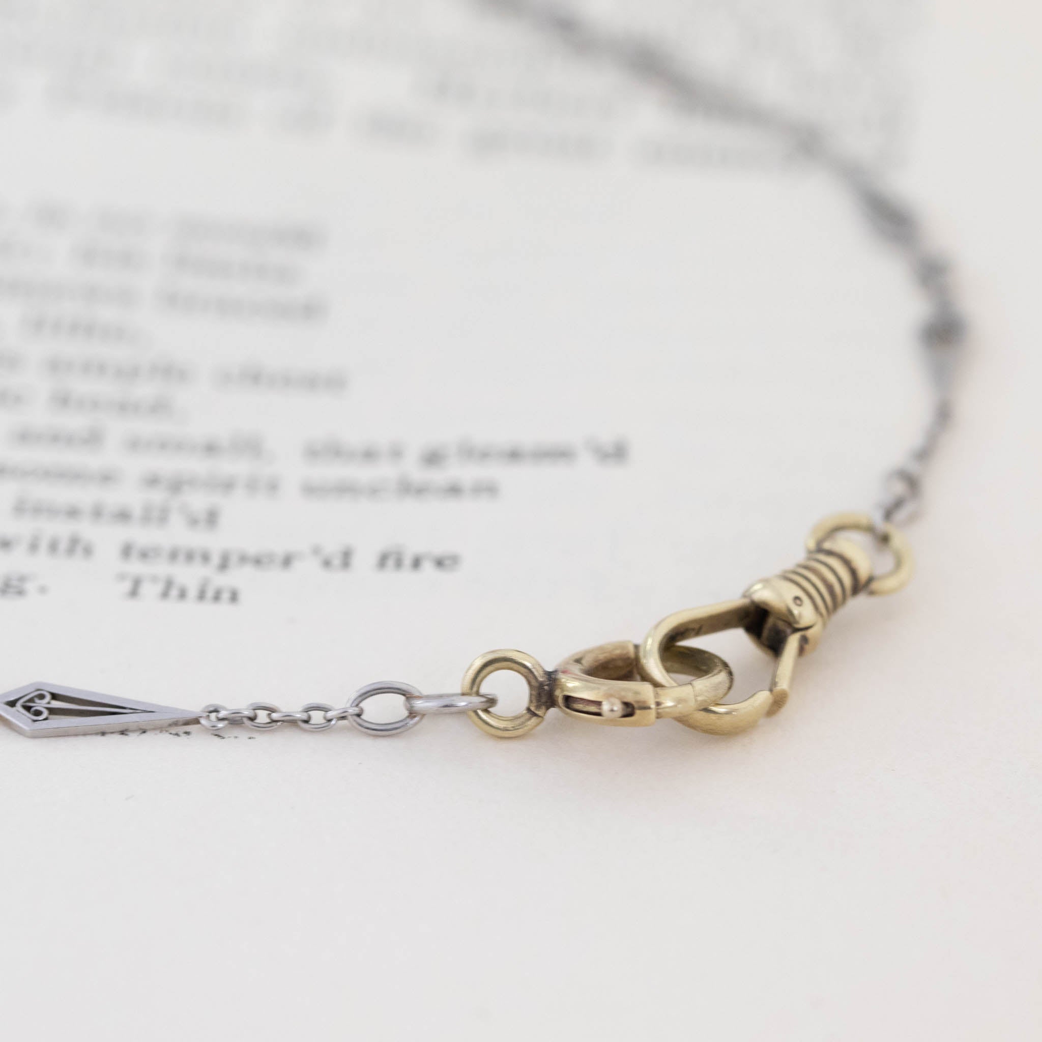Slim and somewhat delicate, yet this vintage arrow point chain is all personality and charm! Oversized dog clip and bale make this ideas for hanging pendants and charms. Just gorgeous on the neck!