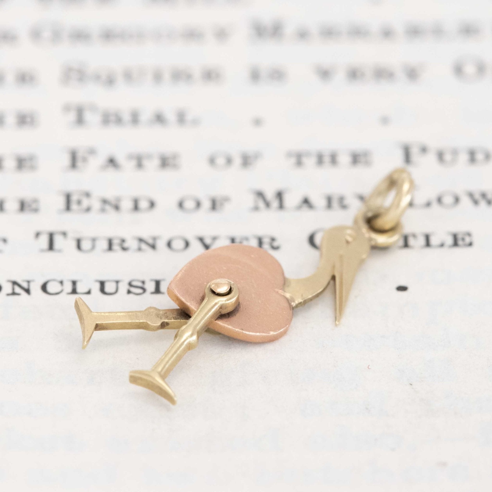 Vintage Articulating Heart Stork Charm