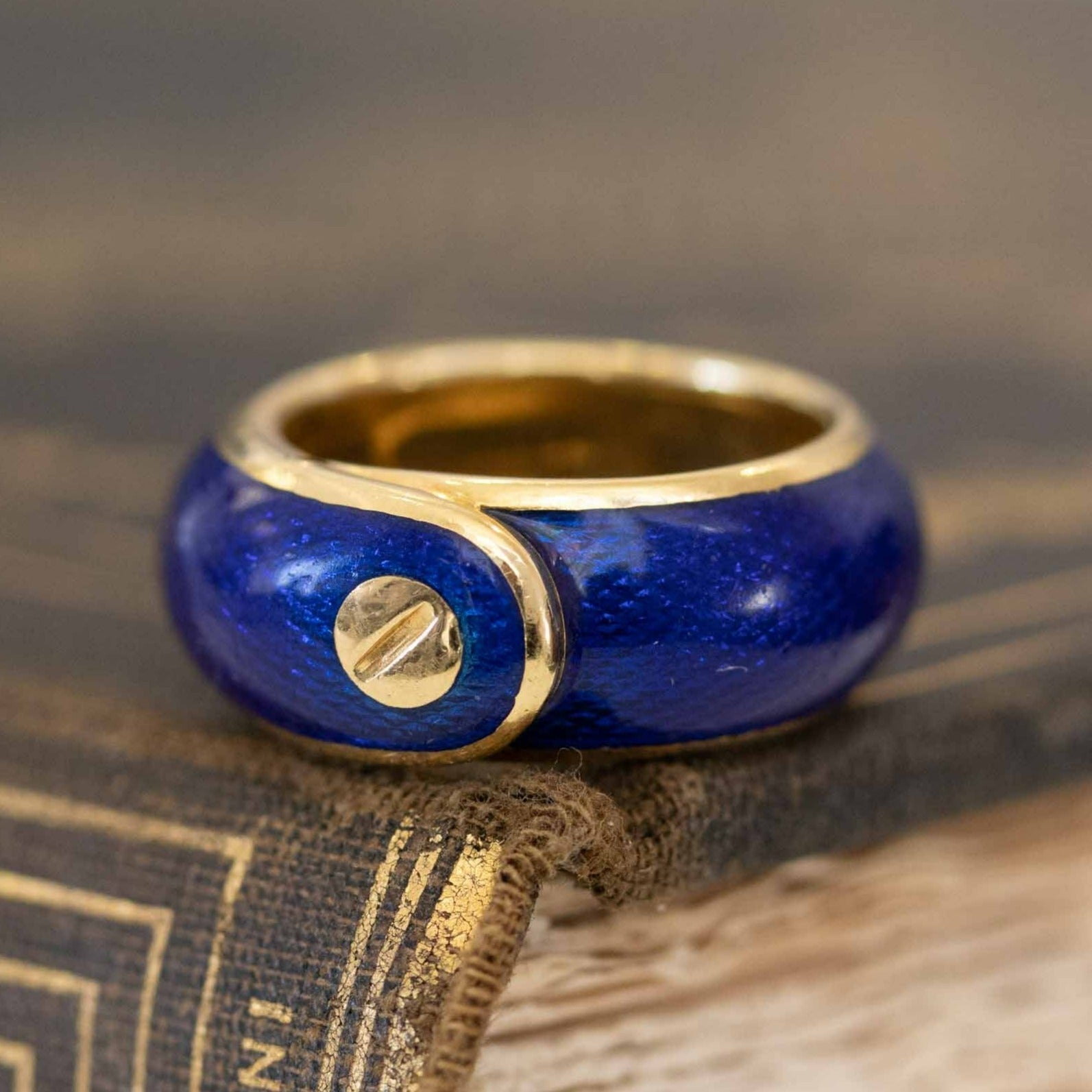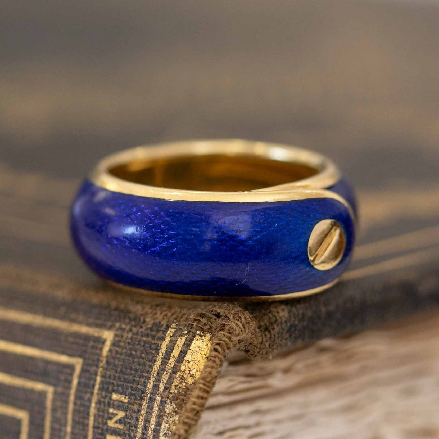 Vintage Blue Enamel Gold Buckle Band by Van Cleef & Arpels