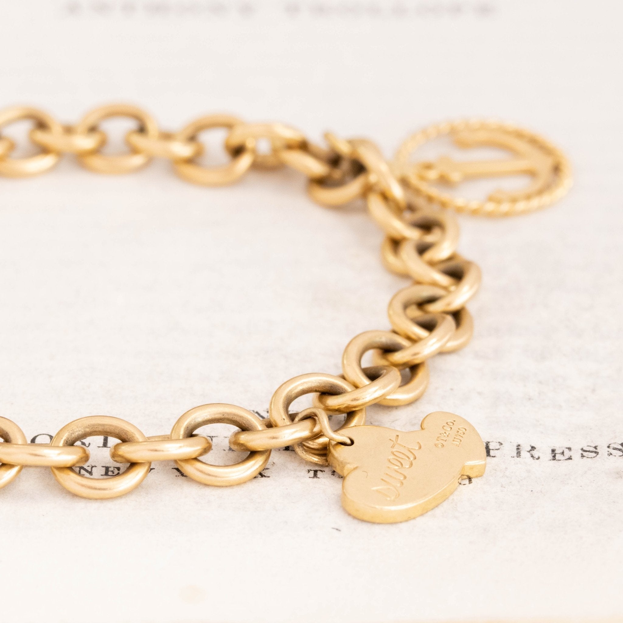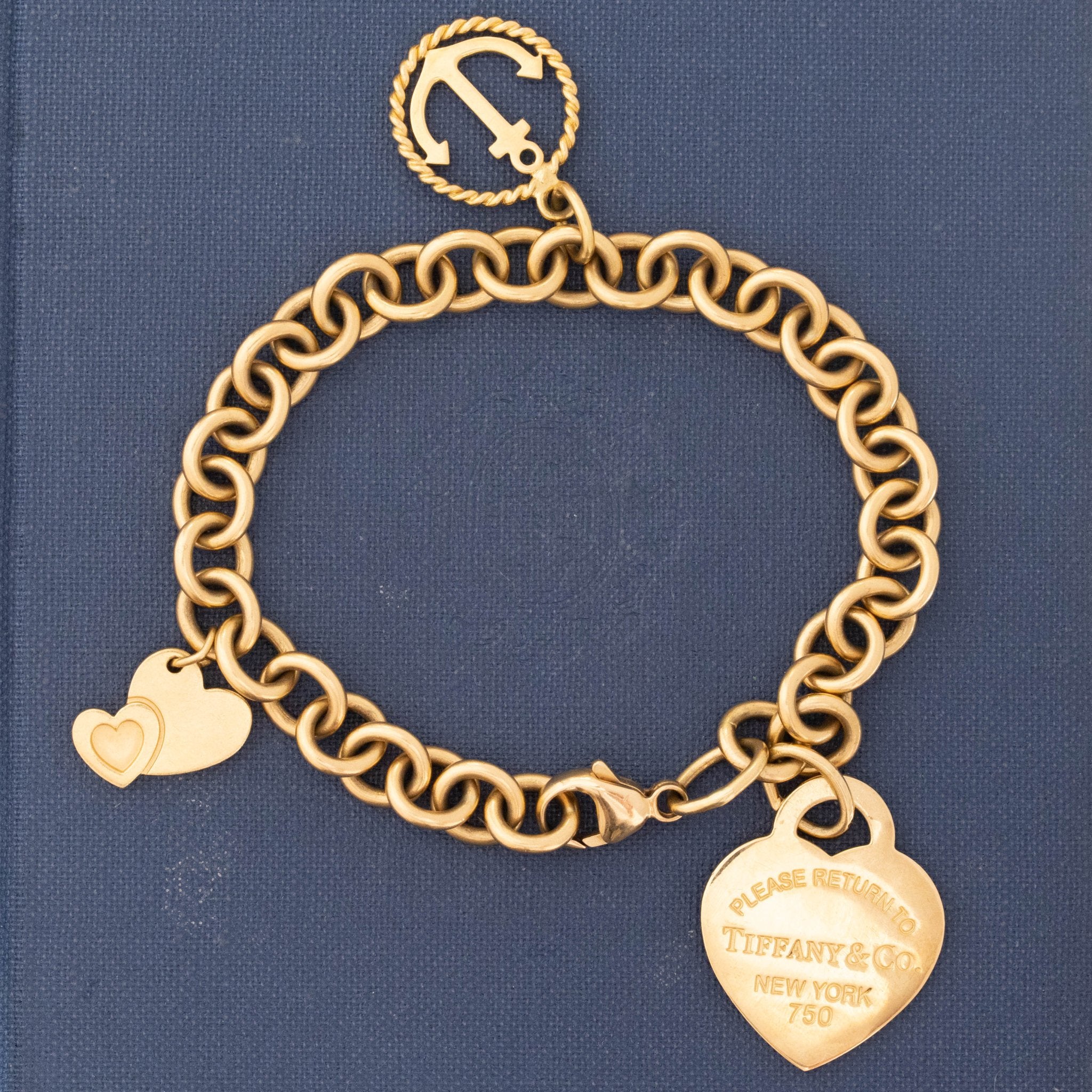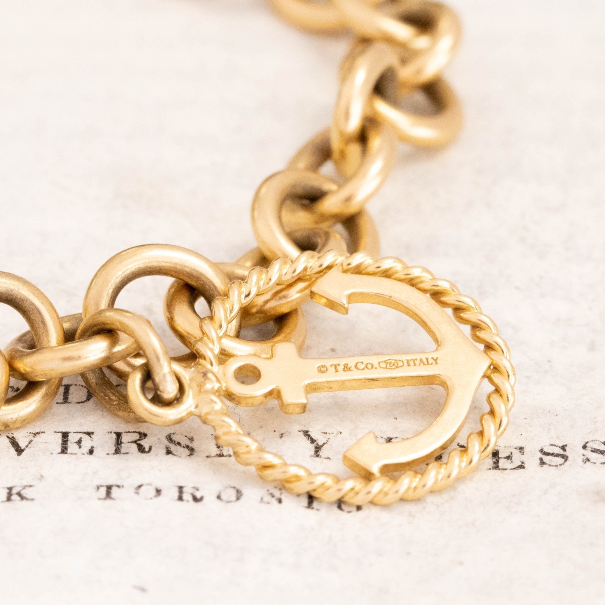 Beyond charming vintage charm bracelet by Tiffany & Co - strung with their iconic Tiffany heart charm, a double heart charm and a lucky anchor. All beautiful symbols of eternal love - can it be any more romantic? We certainly think not!