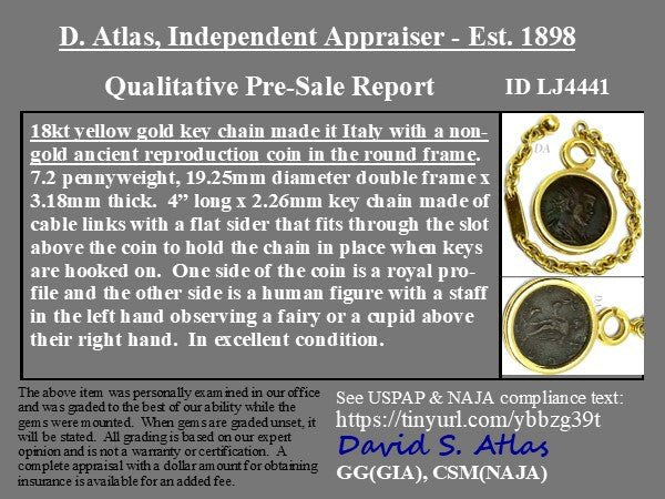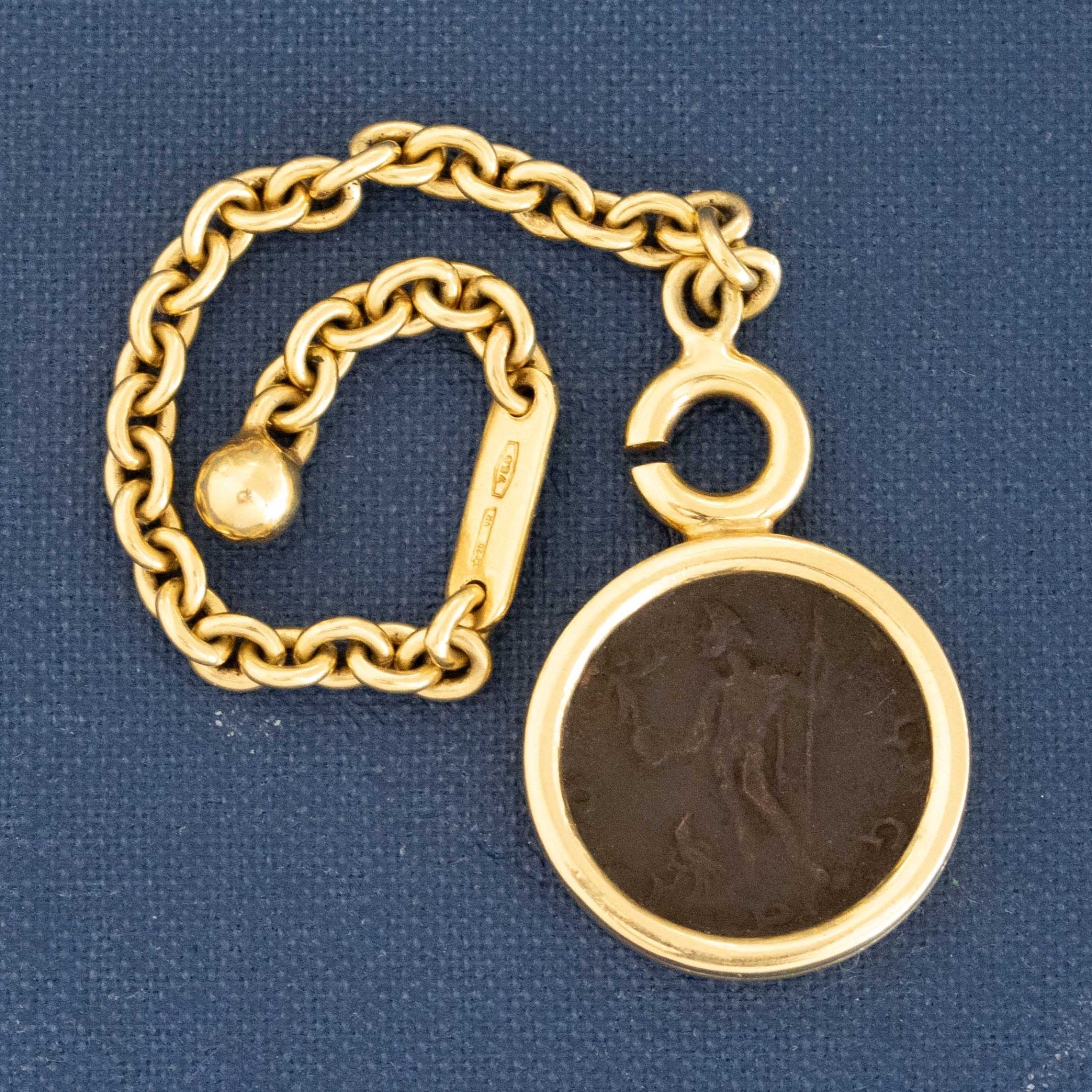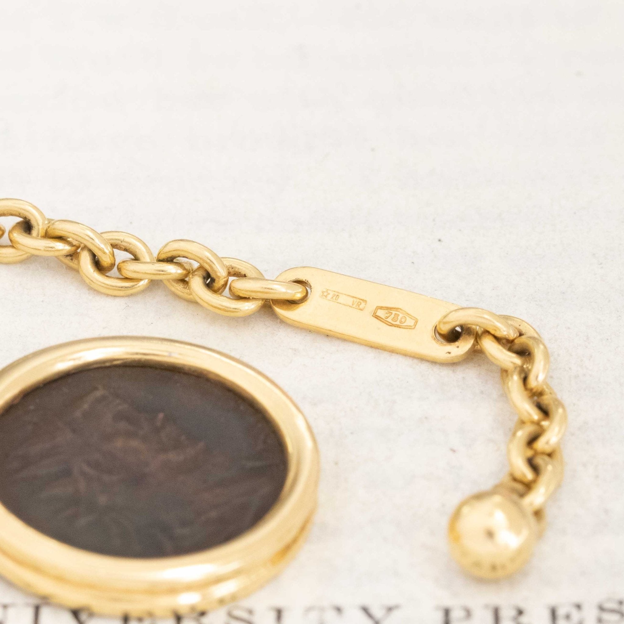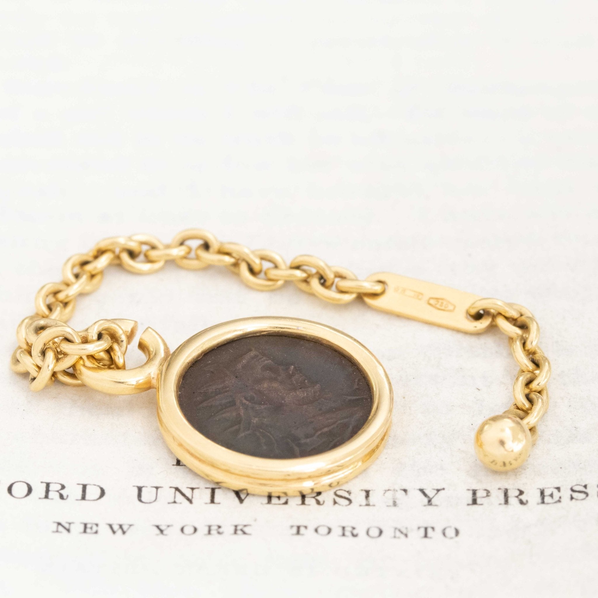 Nobody does keychains quite like old jewelers of the past. Case in point: this chain and bezel-set reproduction coin! A luxe "ball and chain" to keep your bits and baubles all organized. Of course, this jewel can be easily re-imagined as a pendant as well (please feel free to inquire!).
