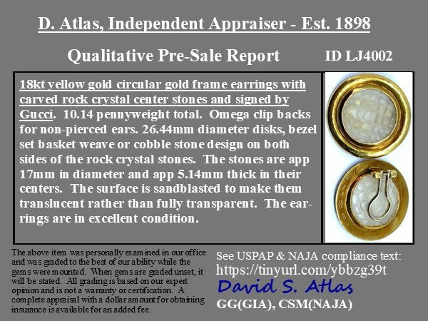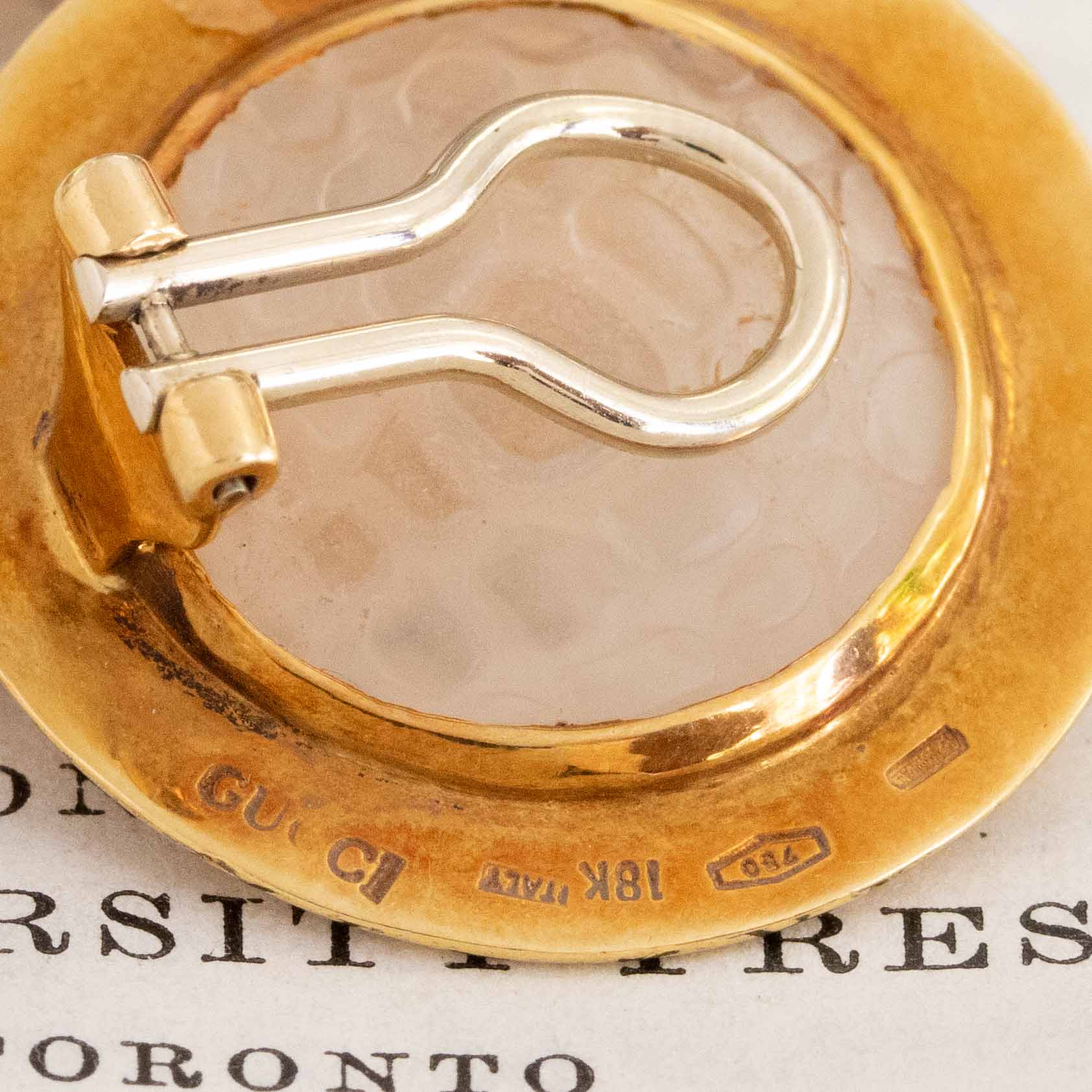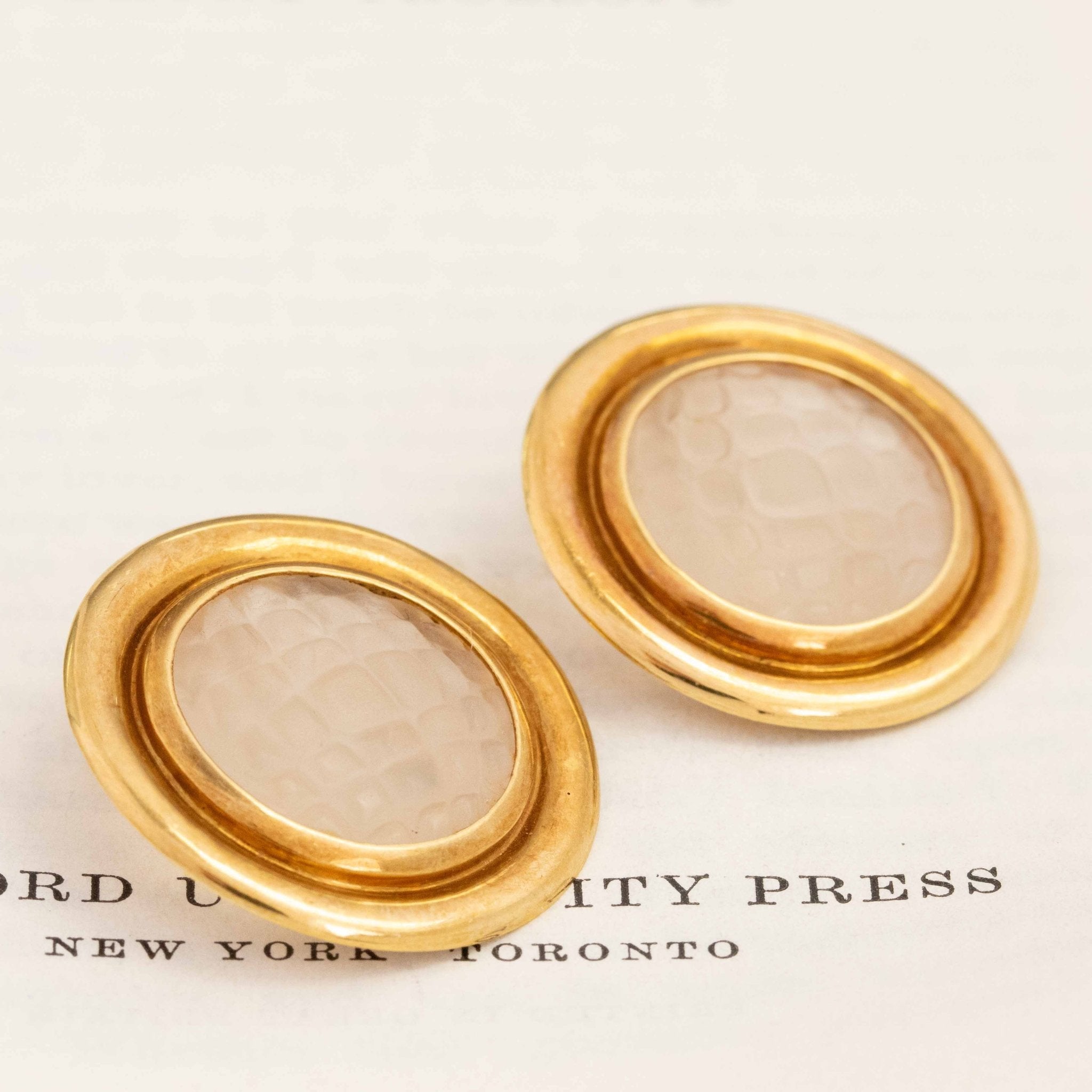 Only the most chic vintage crystal earrings by Gucci - they scream 80s fashion on the lobes! Carved rock crystal appear to have been sand blasted to create that ethereal, translucent glow, defining the pattern more clearly. Most def a statement on the lobes, and we are here for it!
