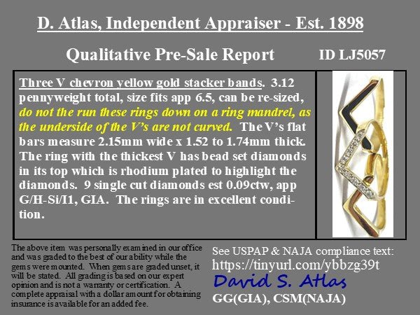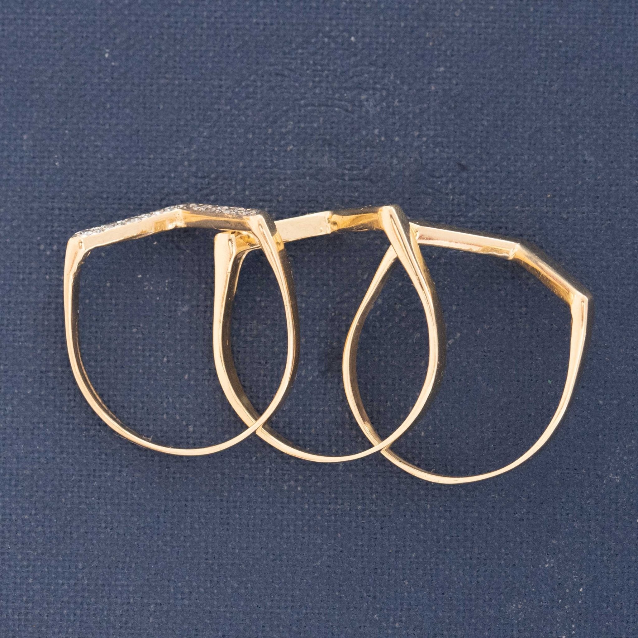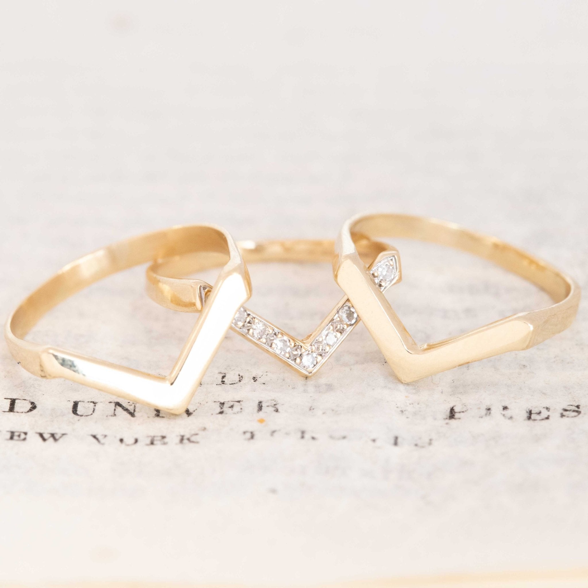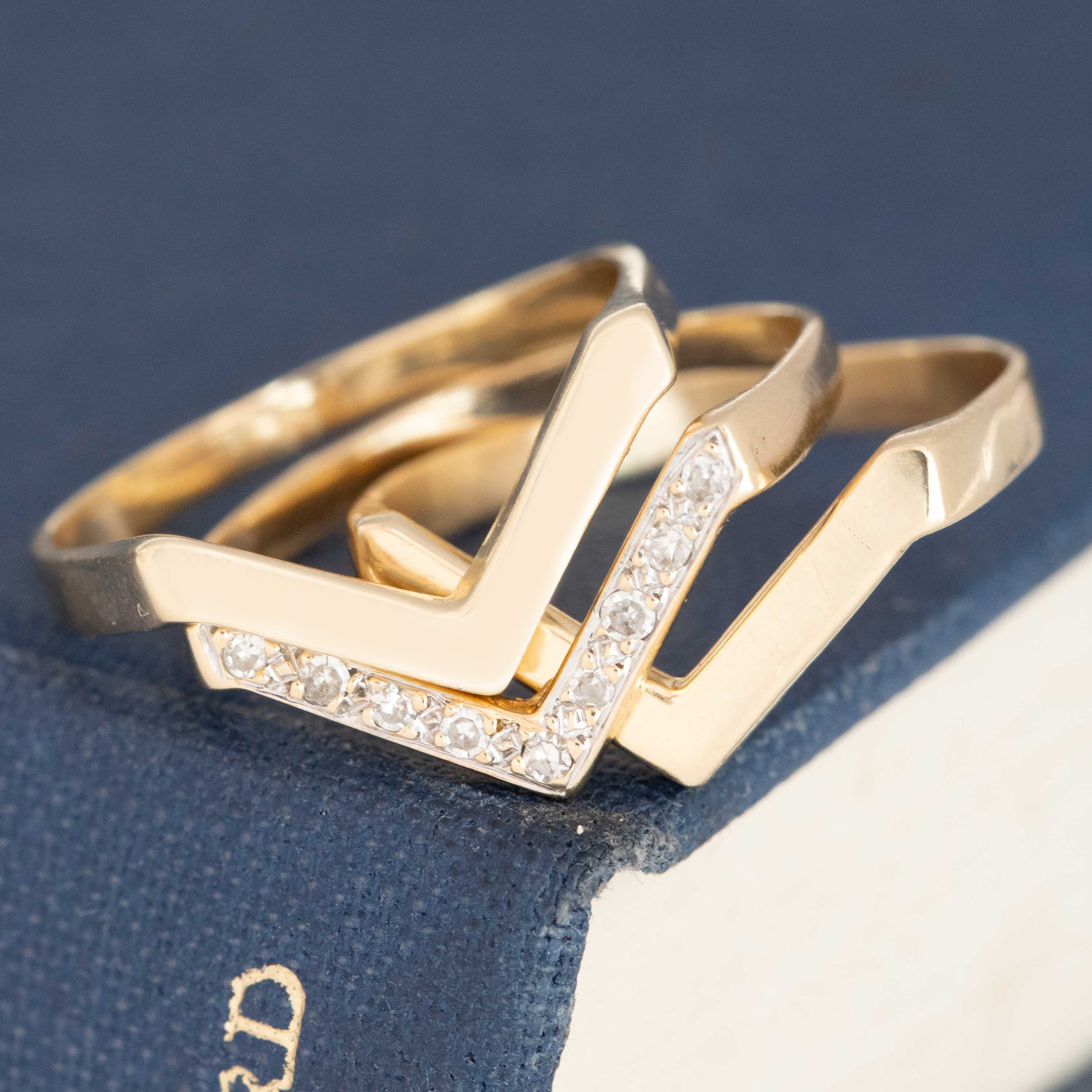 A charming trio of gold chevron bands which nest deliciously with one another - one of the three is studded with little diamonds, making for the perfect amount of sparkle.
