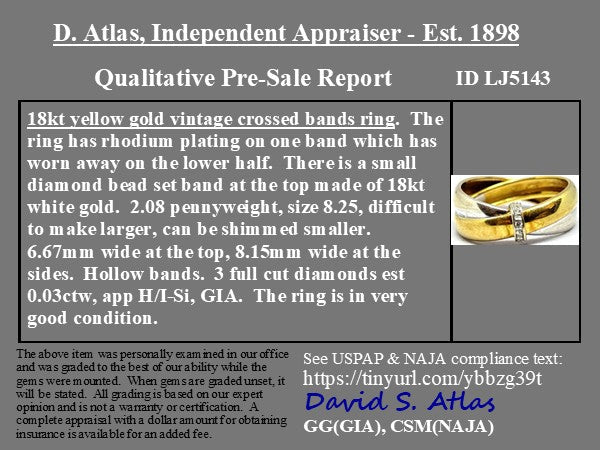 A two tone little cross band with a diamond “ring” accent! From the visual contrast of the two different metal colors to the perfect touch of sparkle, it packs plenty of detail with the ease of one band. Sooo good on the finger too!