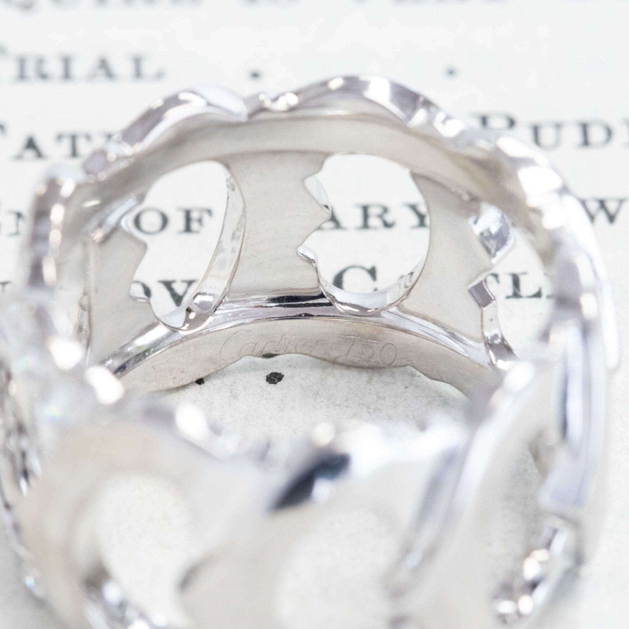 A Cartier classic - this time in crisp white gold and diamond accent details! We love how she spans and sits on one's finger, offering up a bold and big look with some airy cutouts in between. An excellent option for those who 1) love Cartier and 2) prefer a white metal.