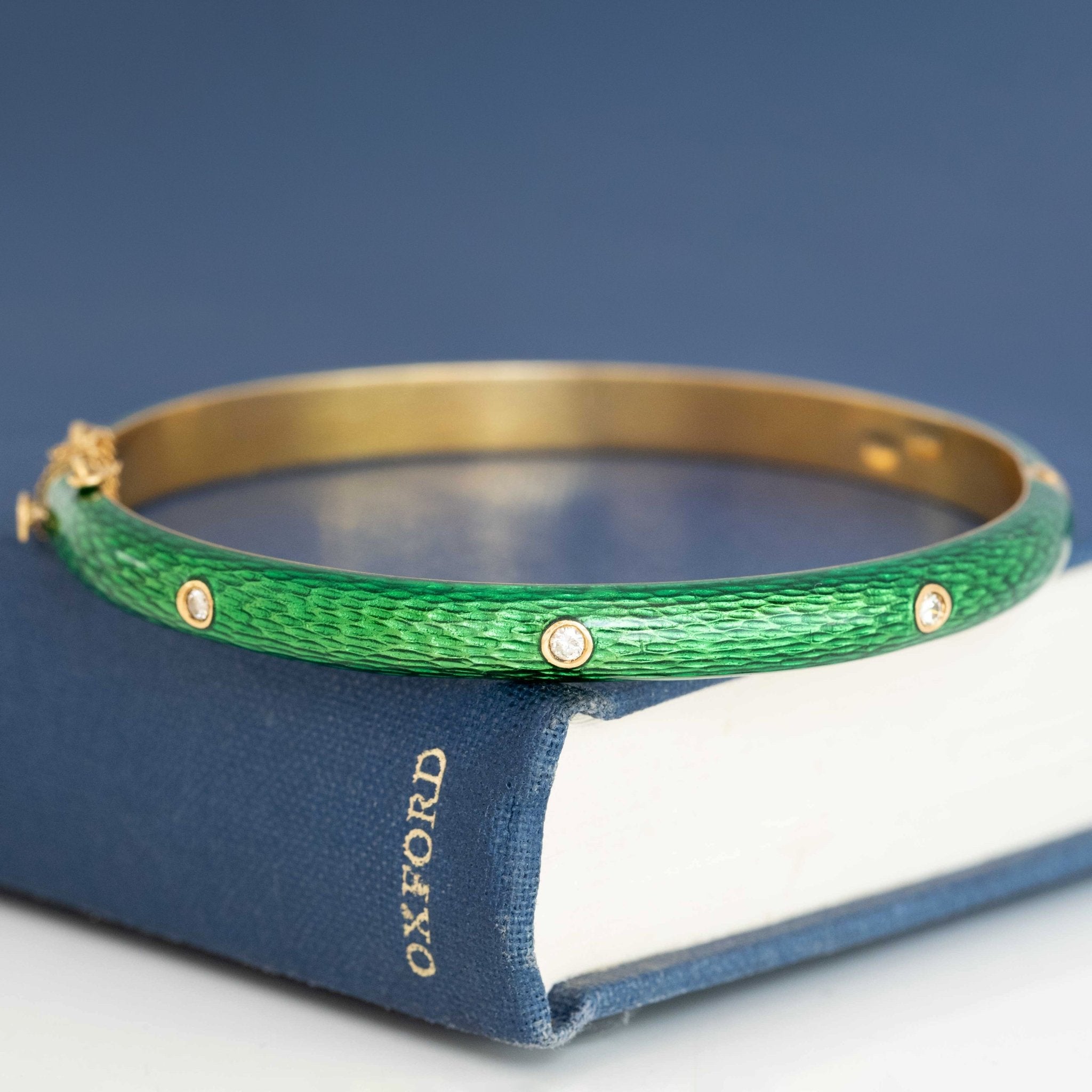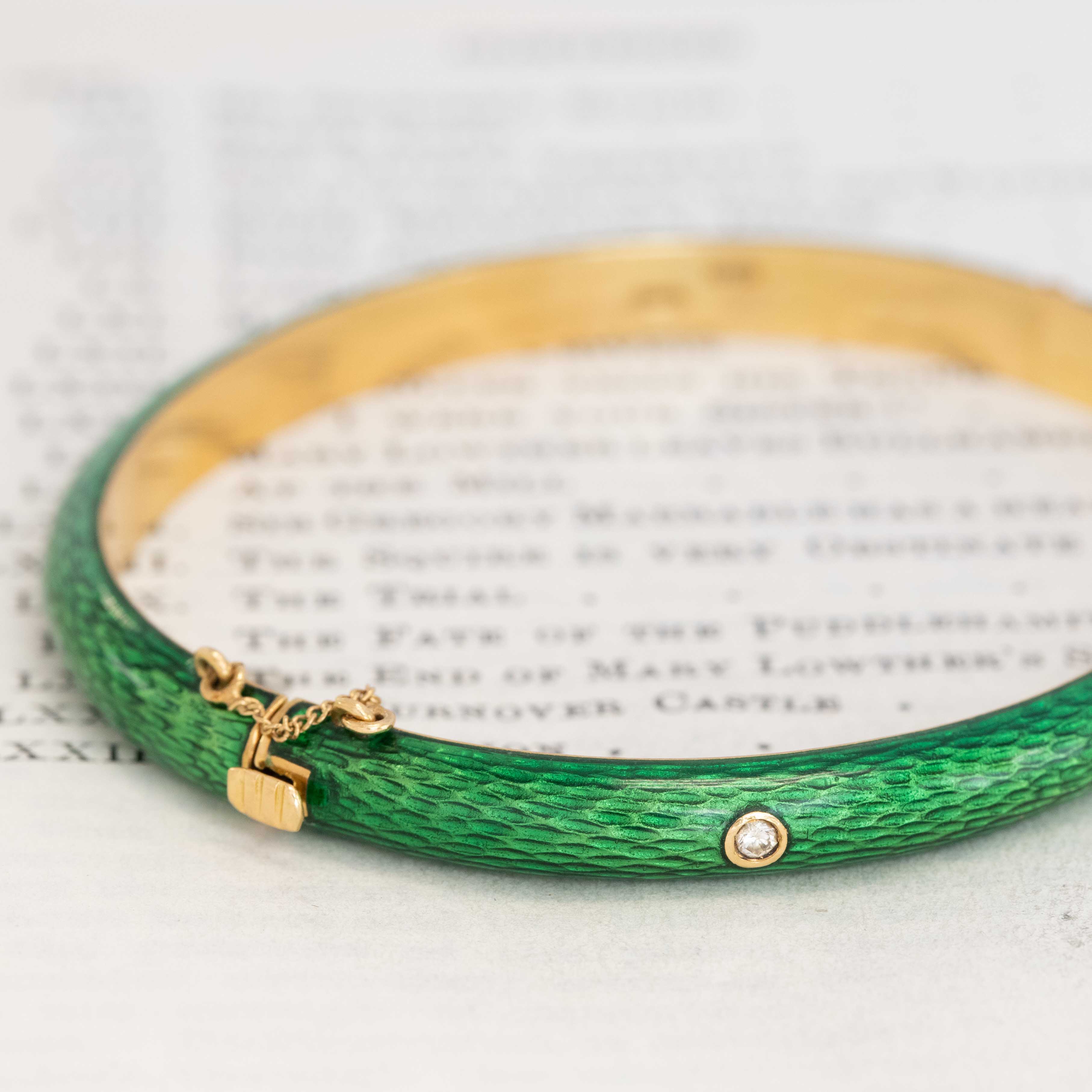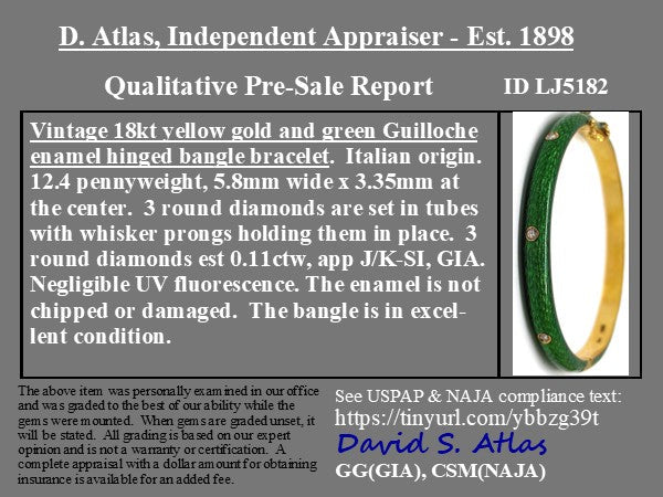 Vintage Diamond Green Enamel Bangle, Italian