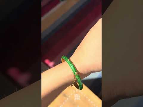 The perfect pop of color on your wrist - vintage Italian at its best. The green enamel is in great condition, bright, and crisp. Accented with tiny diamonds in a gold bezel, this jewel adds a touch of visual interest.