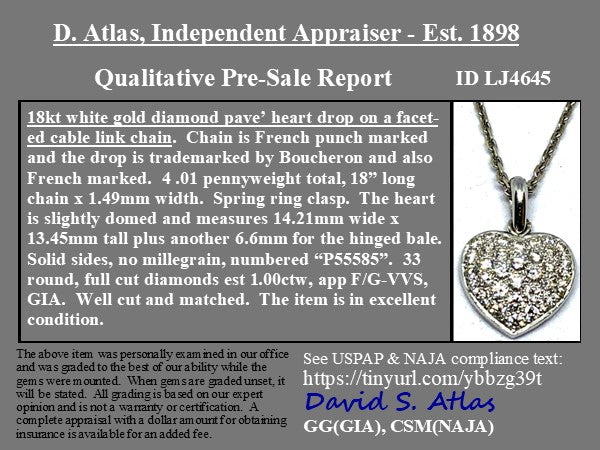1.00ctw Vintage Diamond Heart Pendant by Boucheron