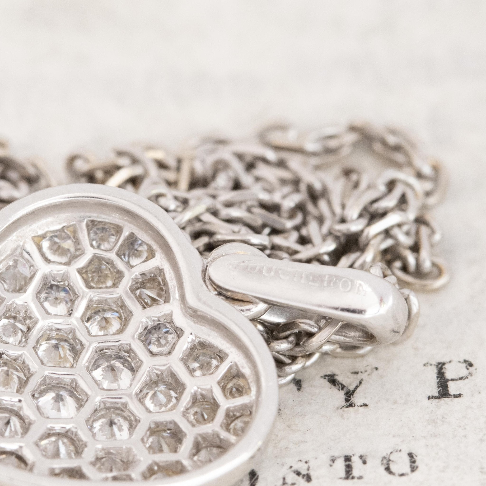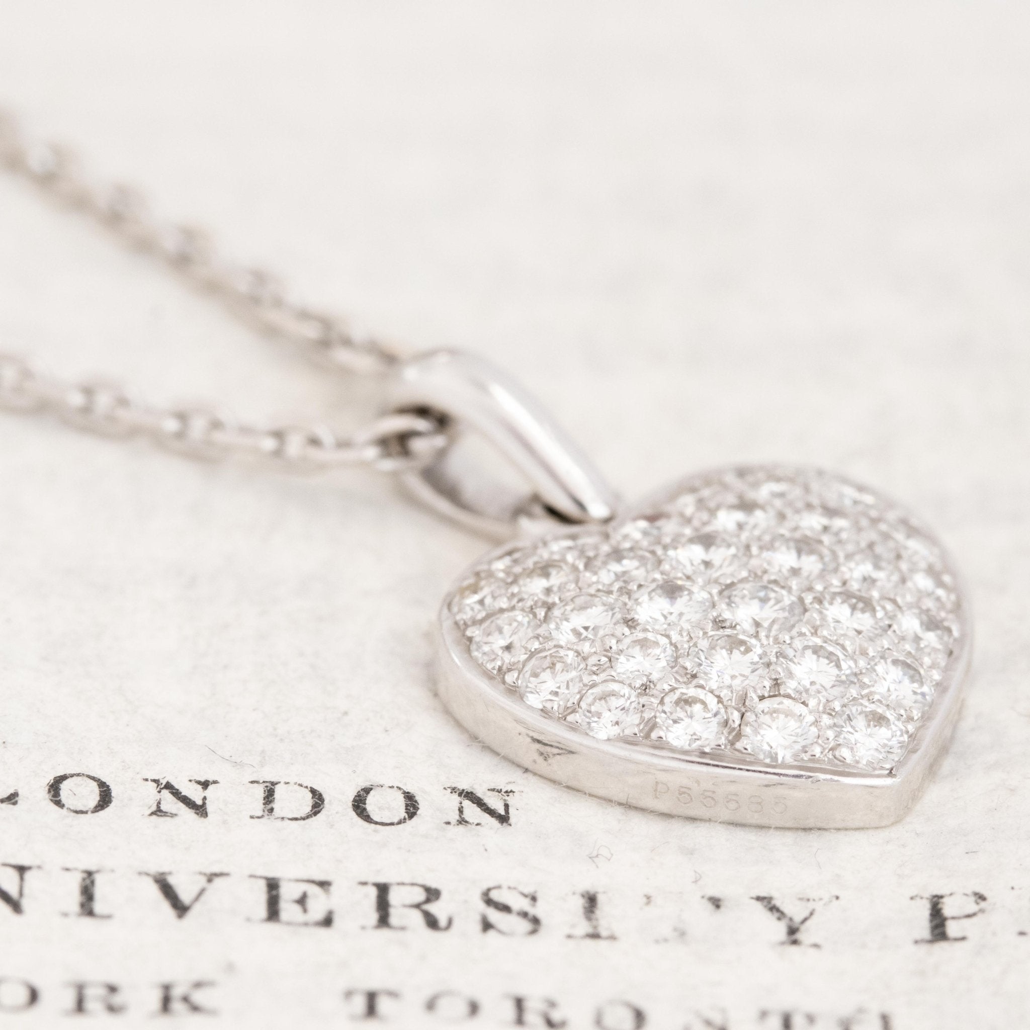 Exquisitely crafted pave diamond heart pendant by French house Boucheron. Elegant and timeless in platinum, with beautiful, sparkly diamonds.