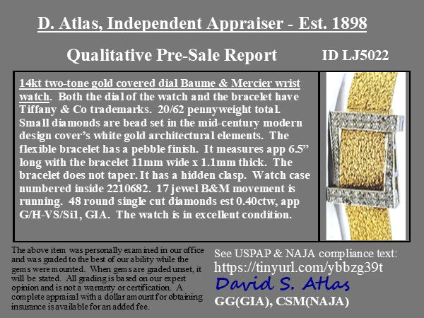 Vintage Diamond Ladies Hidden Watch Bracelet, by Baume & Mercier for Tiffany & Co.