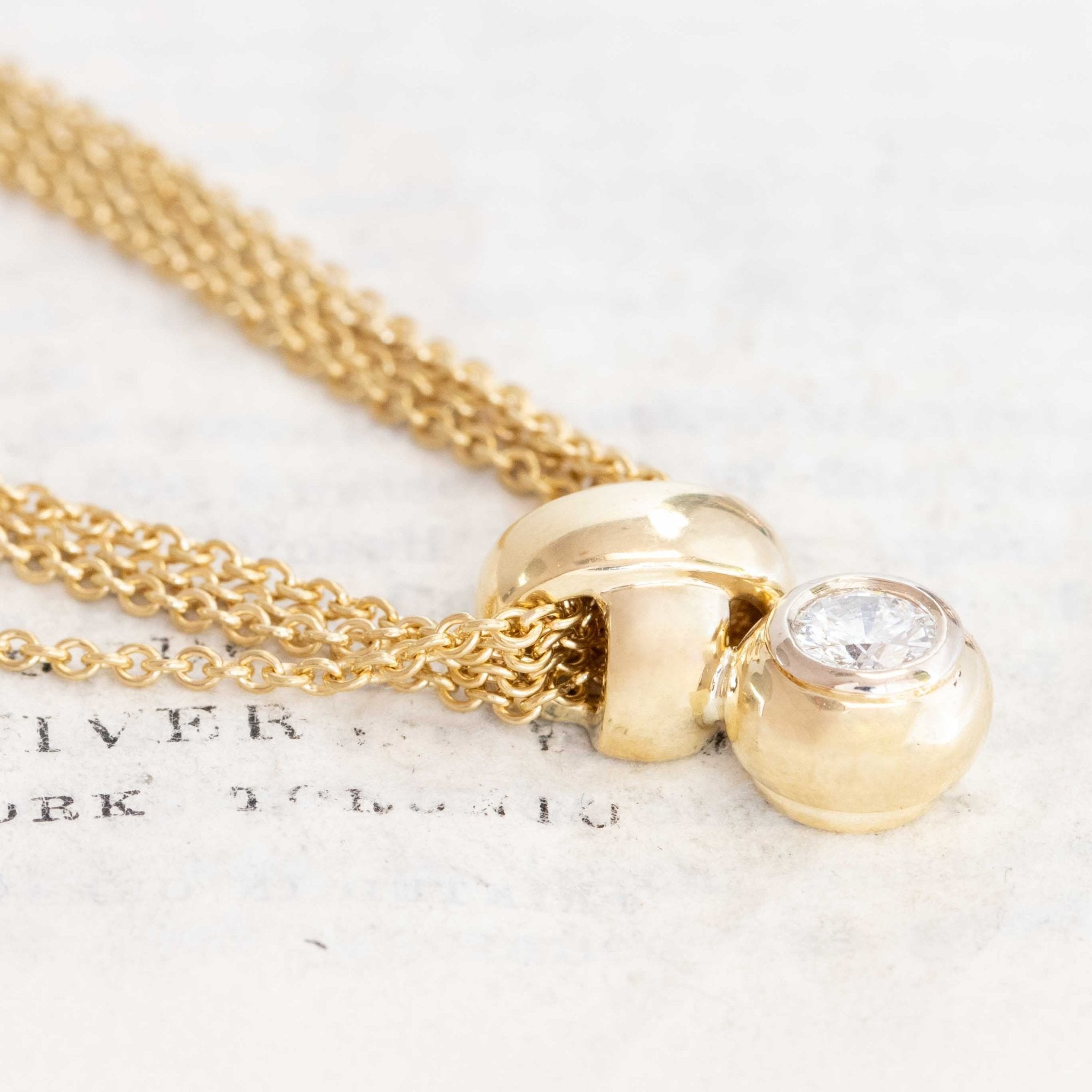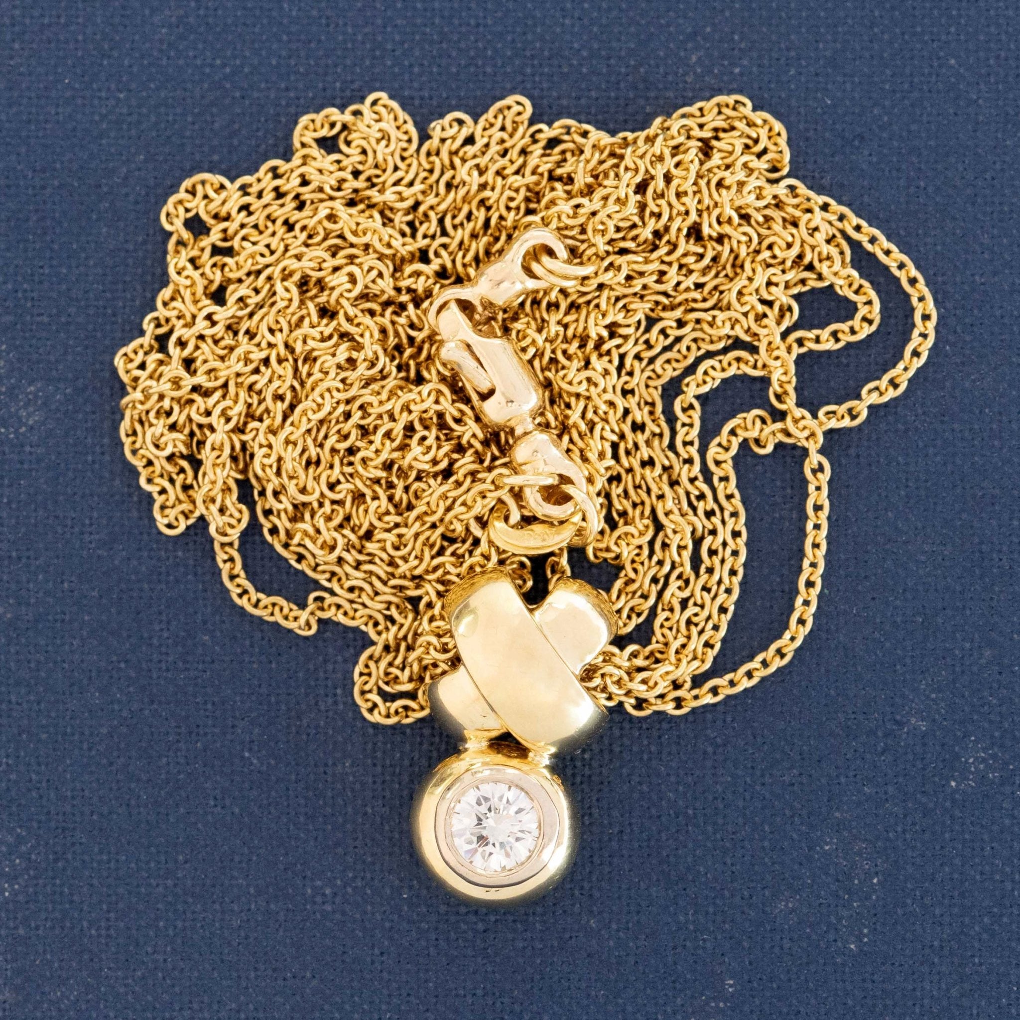 Its vintage Italian at its best! We love the quadruple chains, the heft and the adorable crossover detail above the super sparkly diamonds. The perfect piece to add to one's jewelry wardrobe!