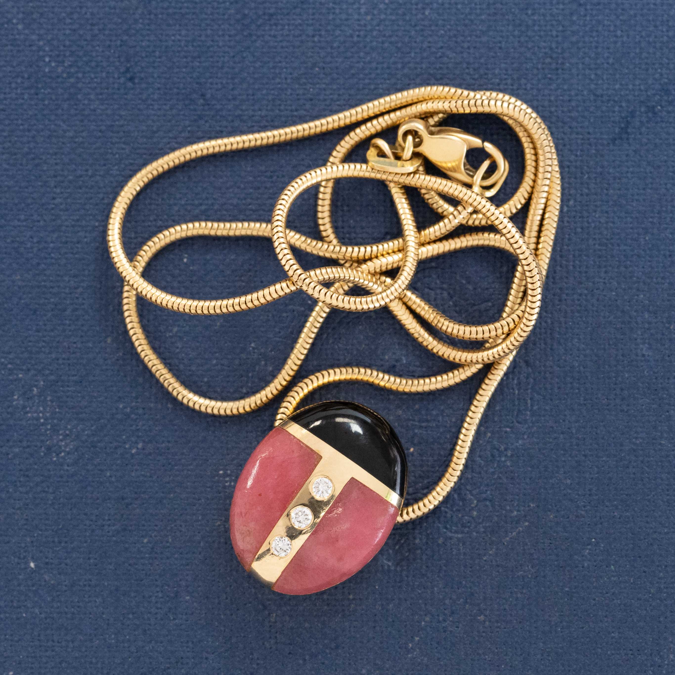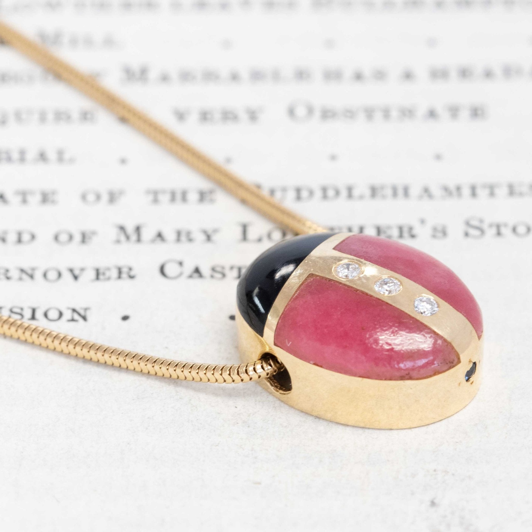 Vintage Diamond, Rhodochrosite & Onyx Ladybug Pendant