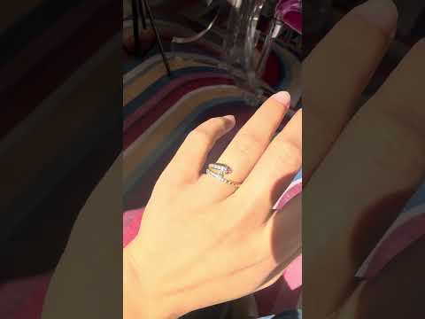 A sweet serpent ring with slim proportions yet so much detail! Two-tone gold, diamond accents, and pink, gemmy eyes really round things out on this happy guy. We love how he looks solo, or stacked with a chunky vintage gold band.