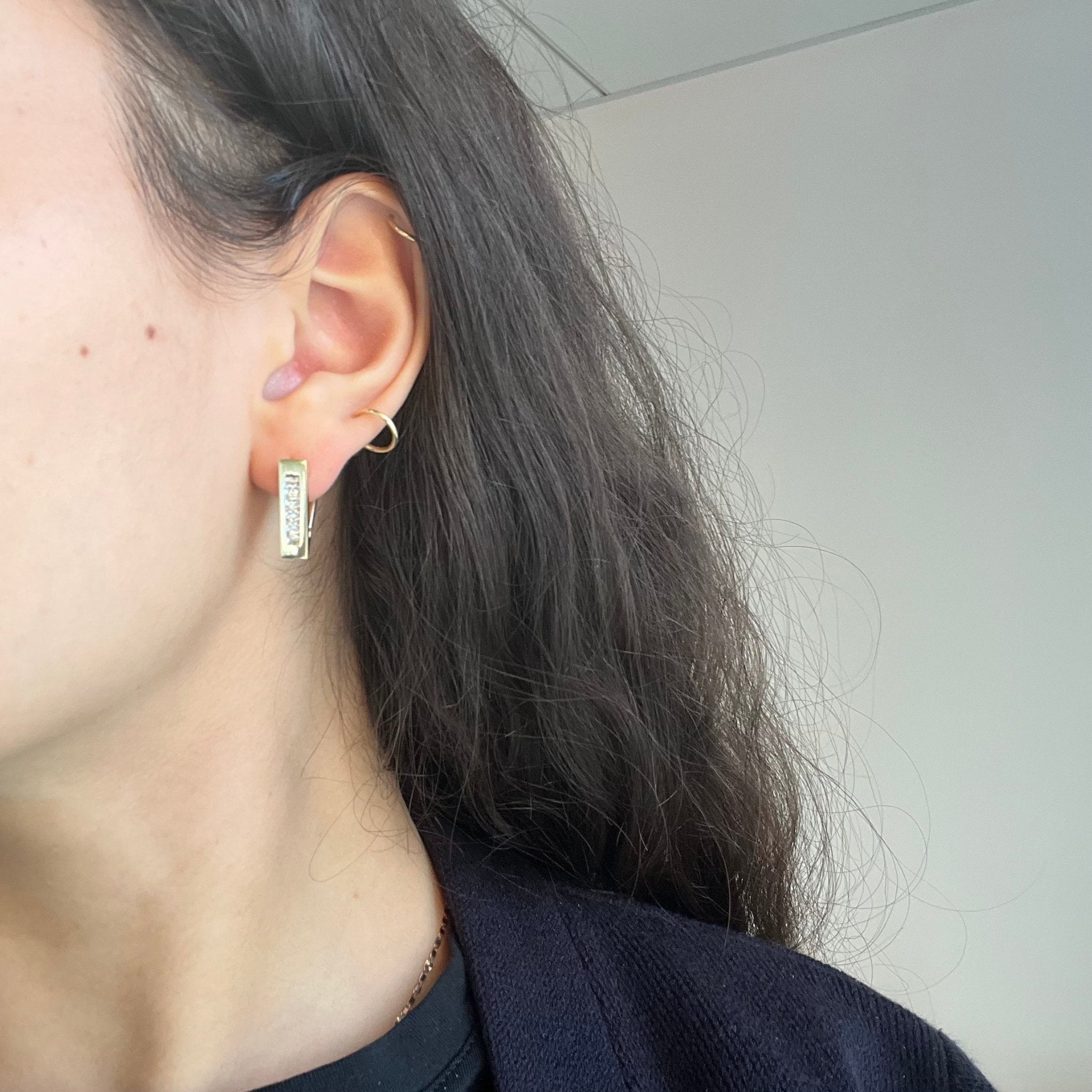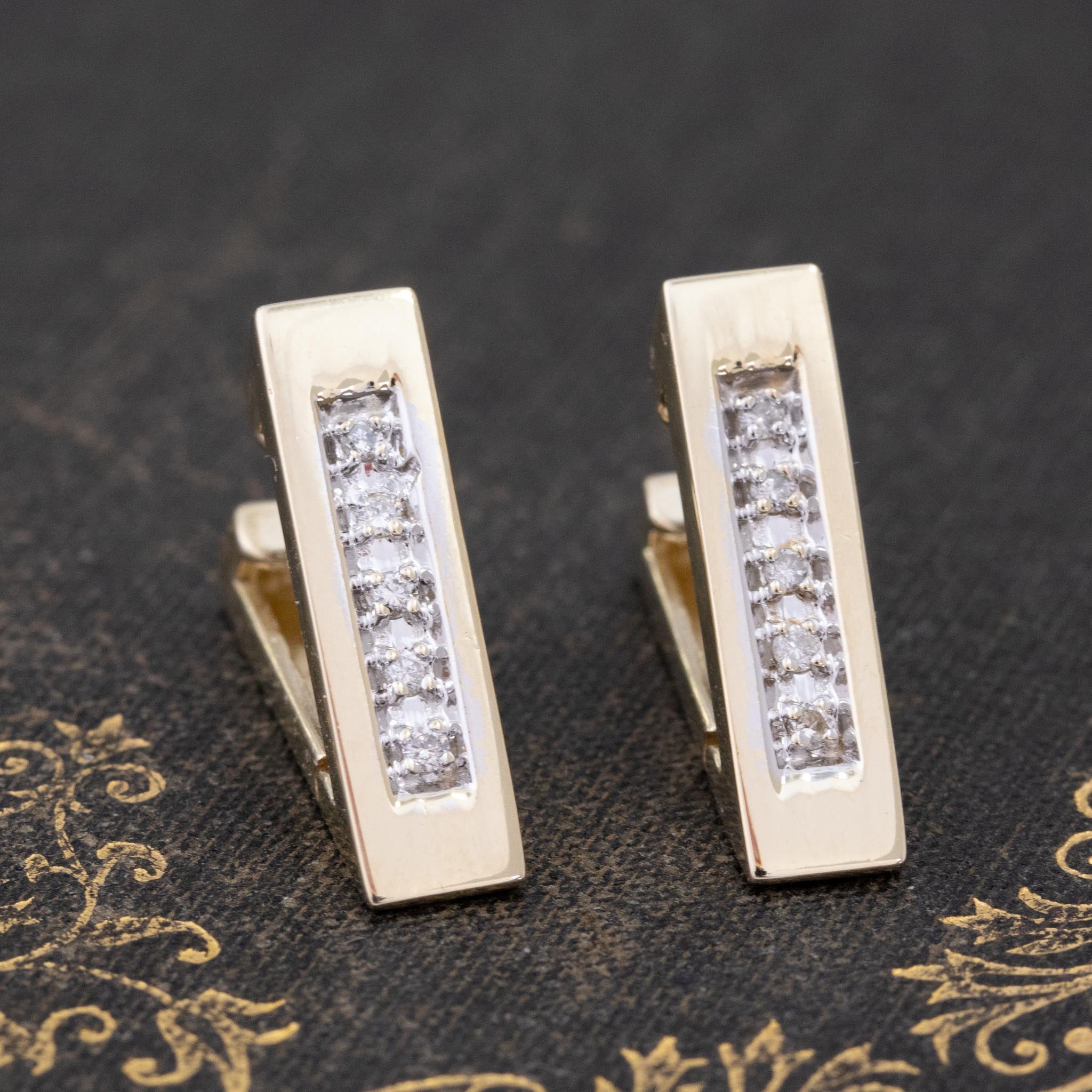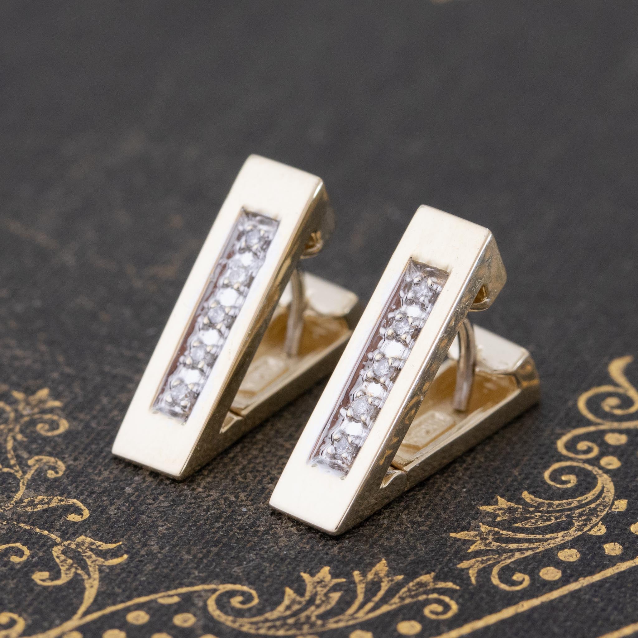 Diamond hoops, but give them a geometric twist, and add diamonds! A rad pair. most likely from the 60s, with wonderful scale and proportion to it. Perfect size for daily wear too!