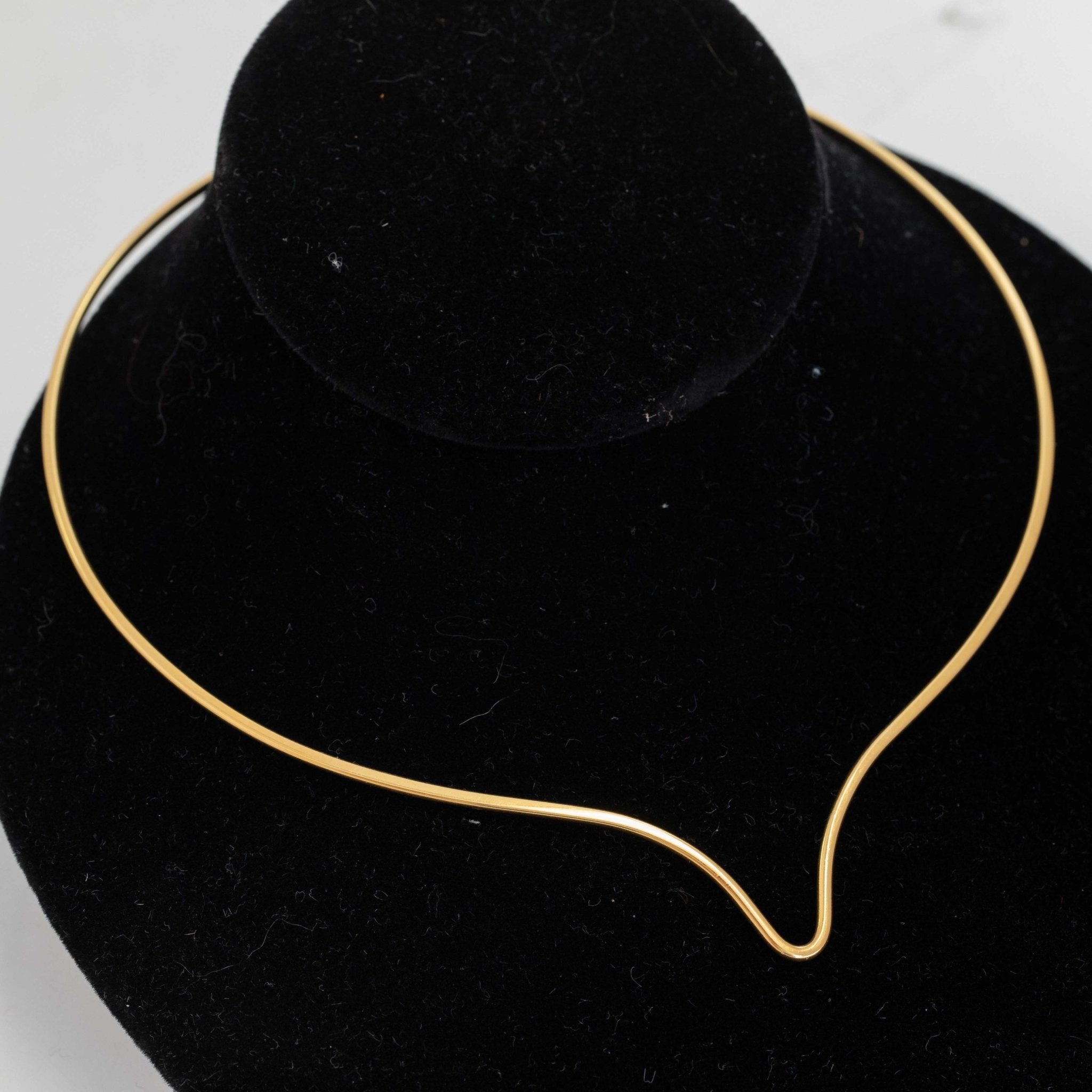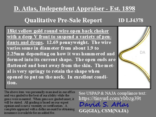 A vintage drop collar - chic, simple, and oh so elegant! An 18kt gold wire which, even in its’ delicate make, feels sturdy and solid along ones’ décolletage. That little drop component in the center is perfect for hanging a solo charm or diamond pendant - or better yet, a jumbo antique brooch-turned-pendant situation.