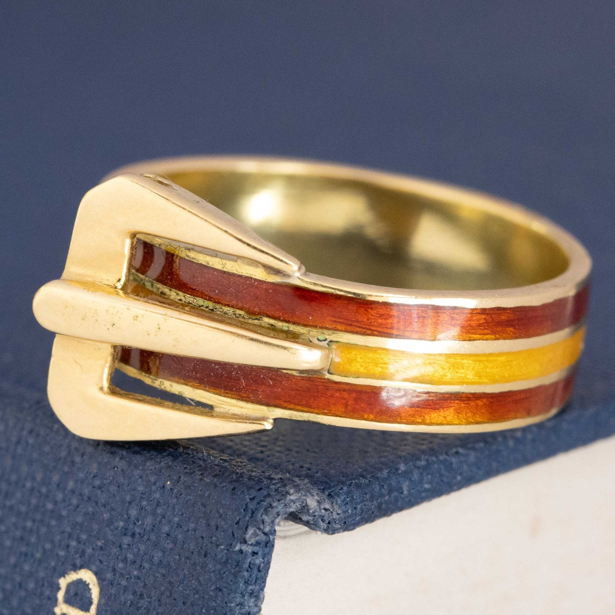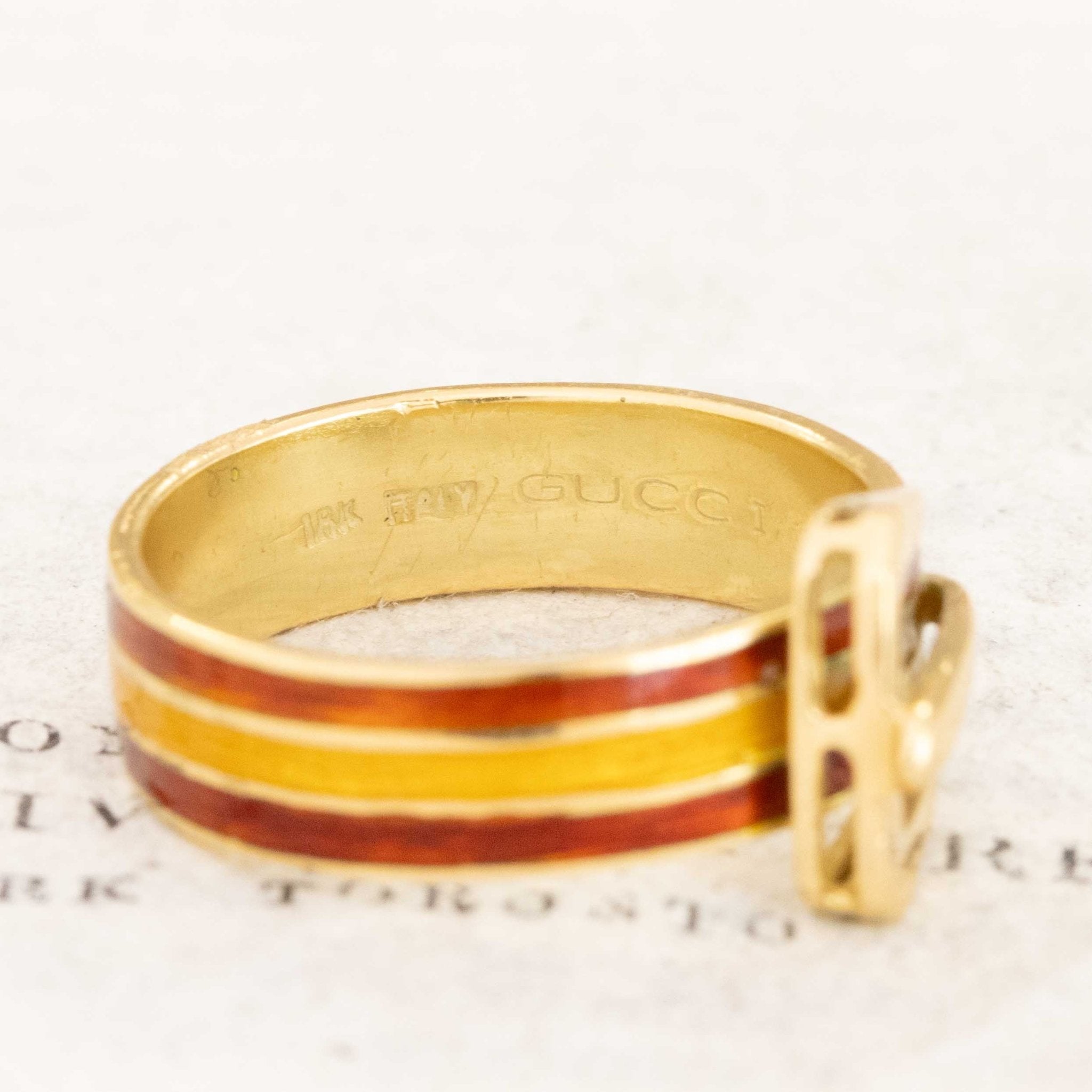 Buckle bands have historically represented fidelity and everlasting love - when you throw crisp enamel and Gucci hallmarks on 'em, you then get a chic piece of jewelry with so much character!