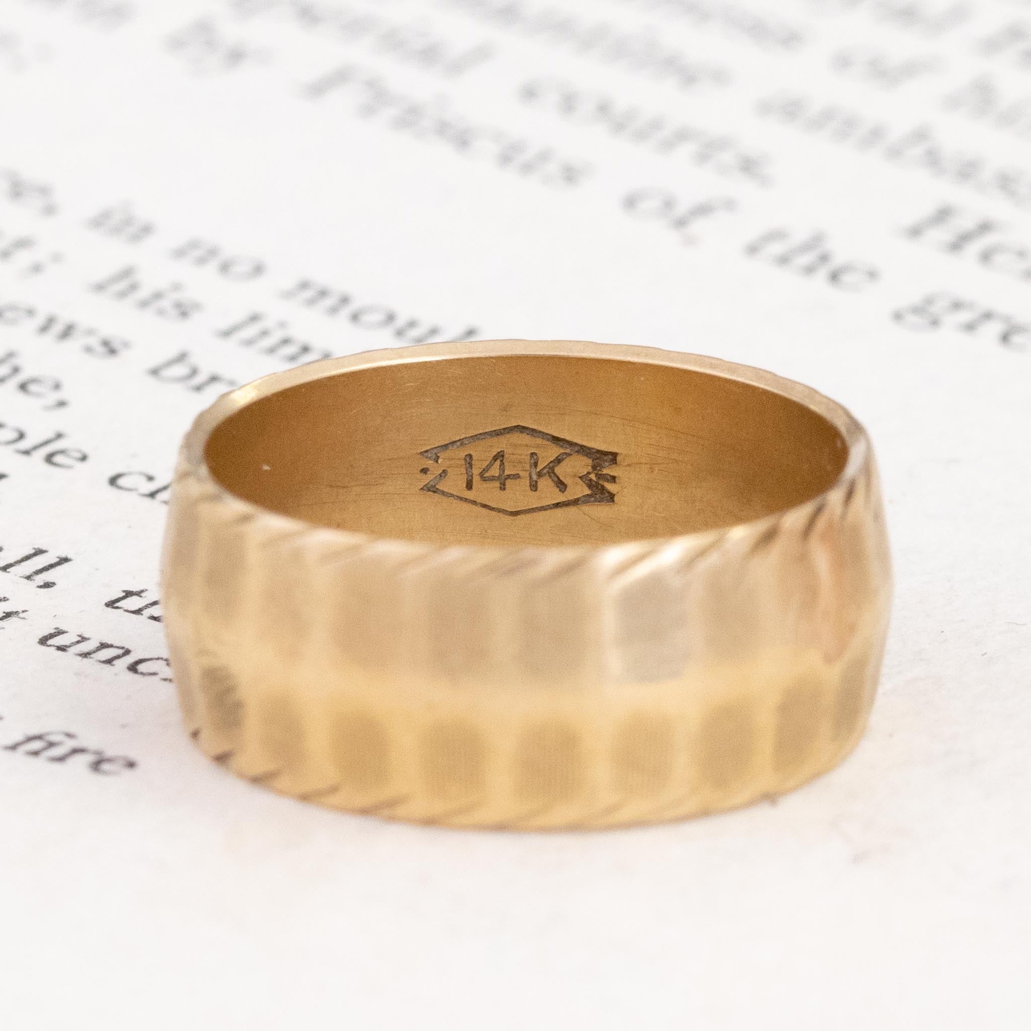 There’s something undoubtedly special about vintage and antique gold bands, especially when they come chock full of intricate details such as this one! With soft but ridged edges, plus ever-so-slightly fluted surfaces, we love the softened texture that wraps all around this baby. A wide, bold fit and a buttery feel on the hands - what more could you ask for?