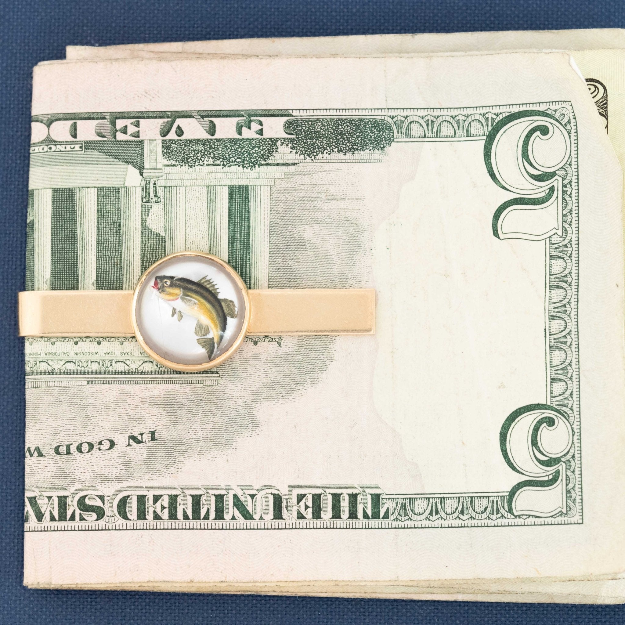 This is a charming tie or money clip depicting a bass - beyond adorable!