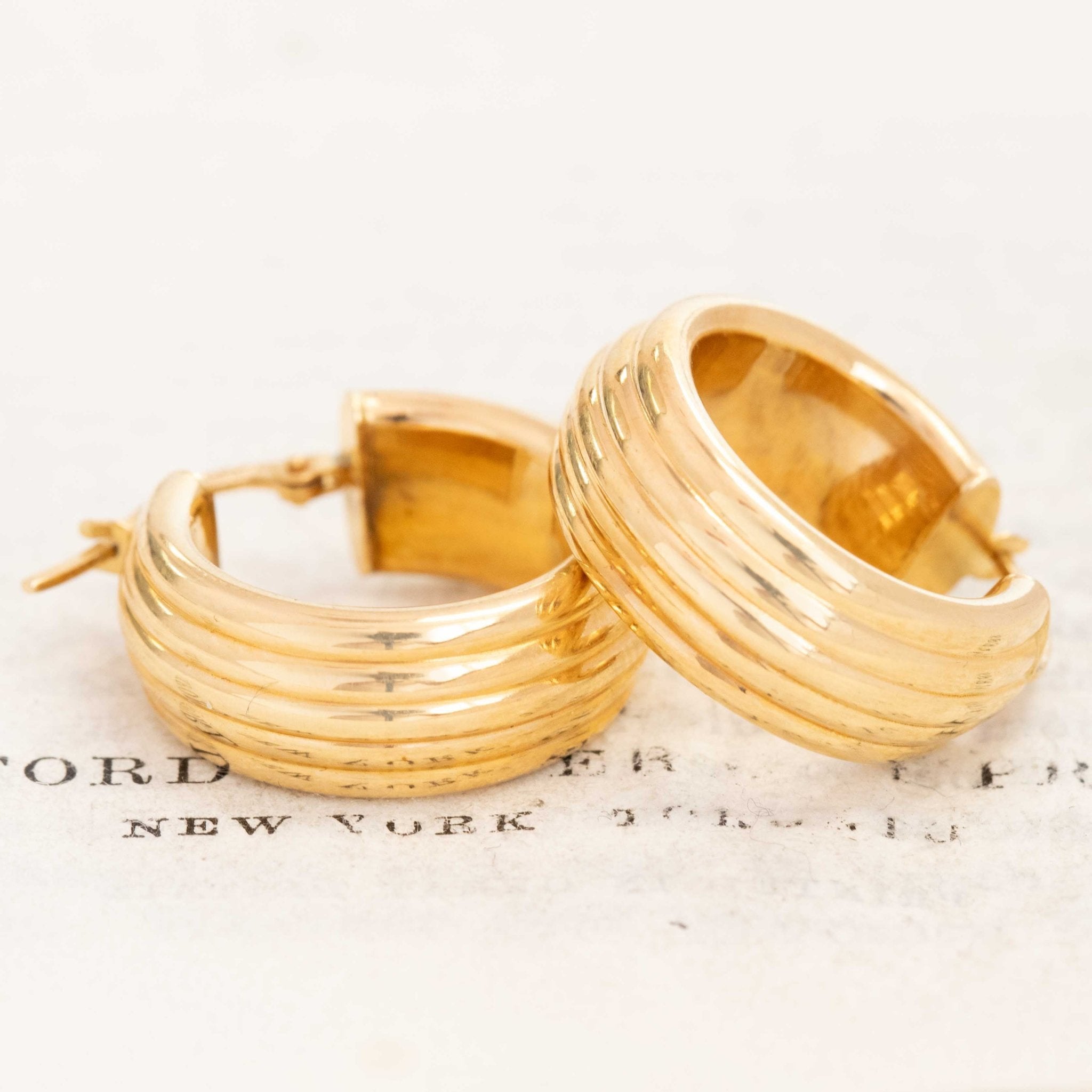 Elegant and timeless, this triple row earring hoops work beautifully from day to evening wear. A forever staple in one's jewelry arsenal.