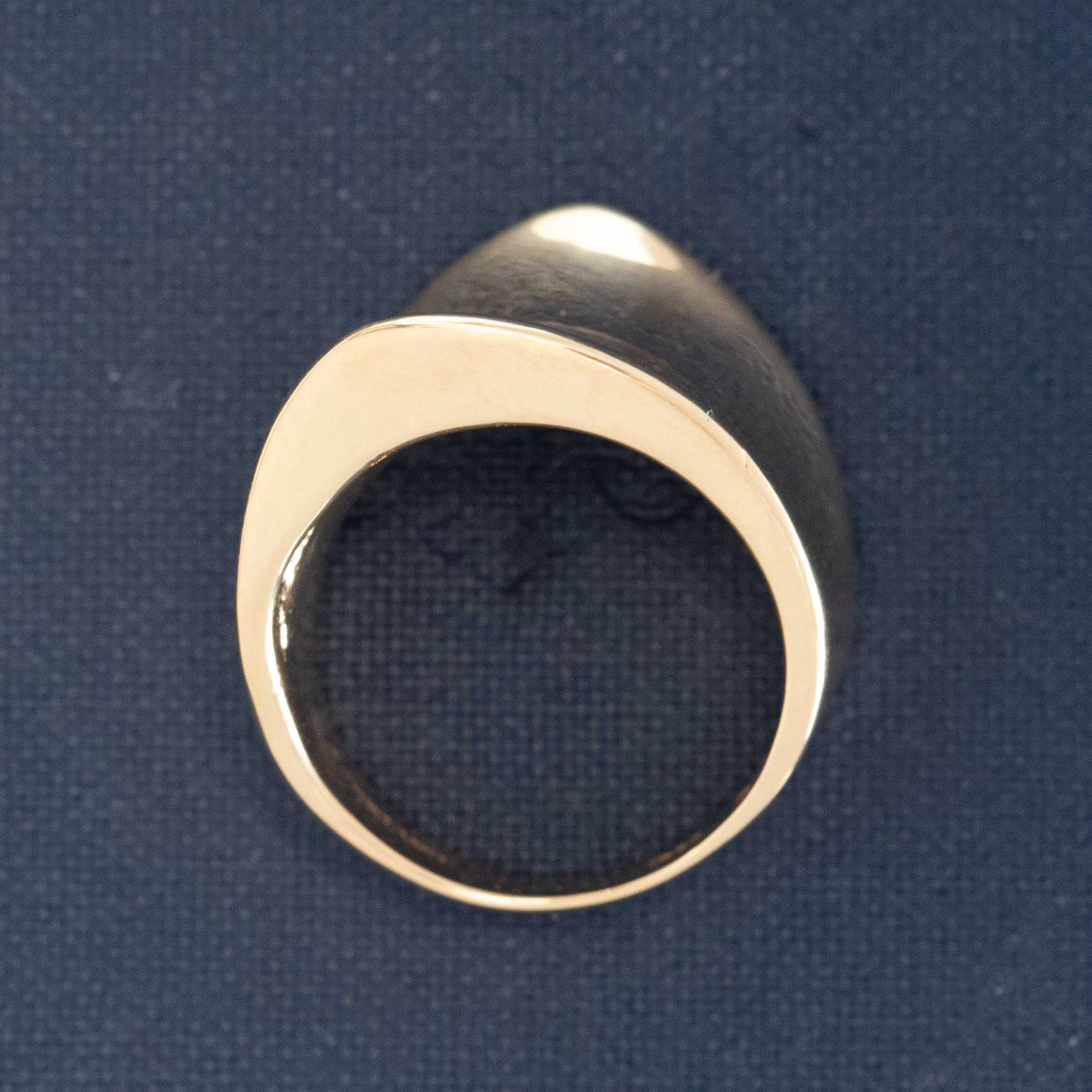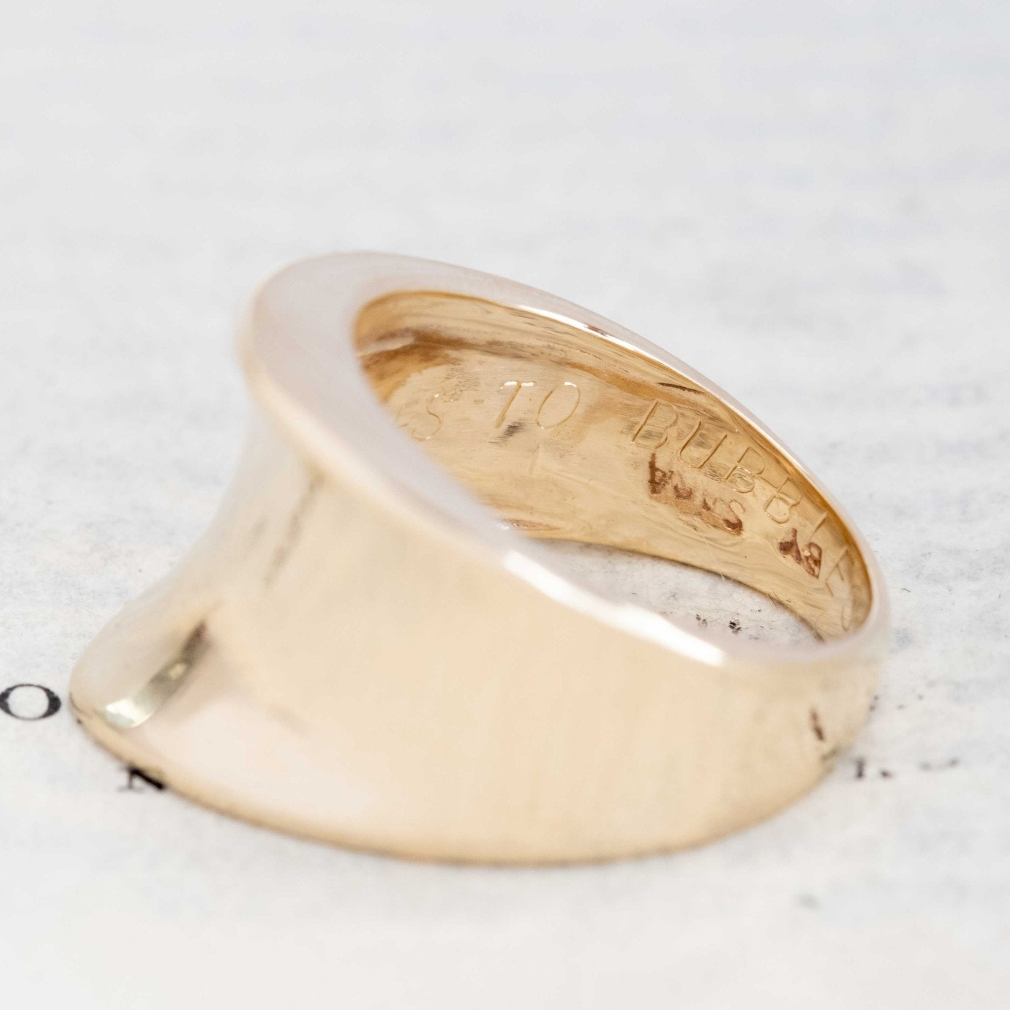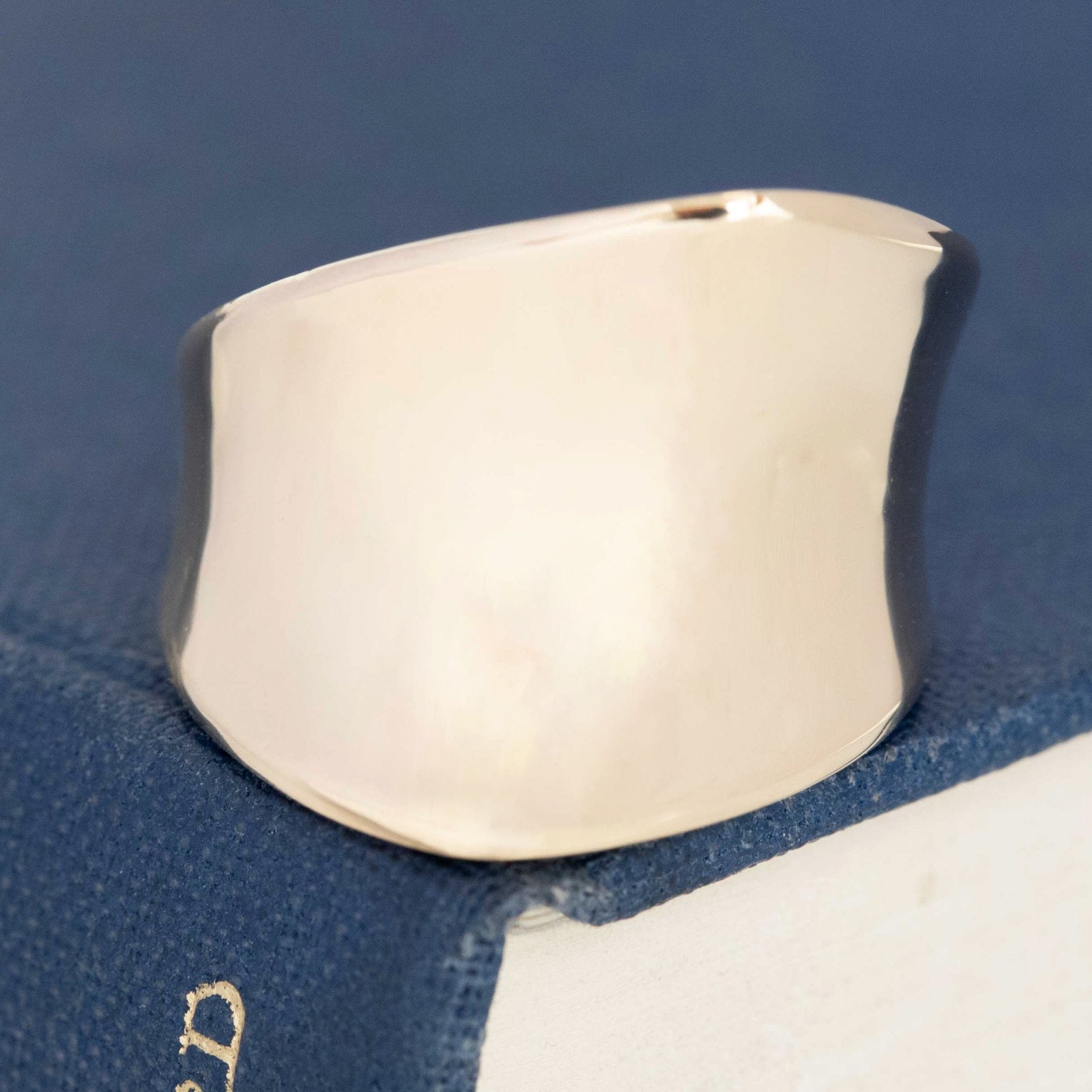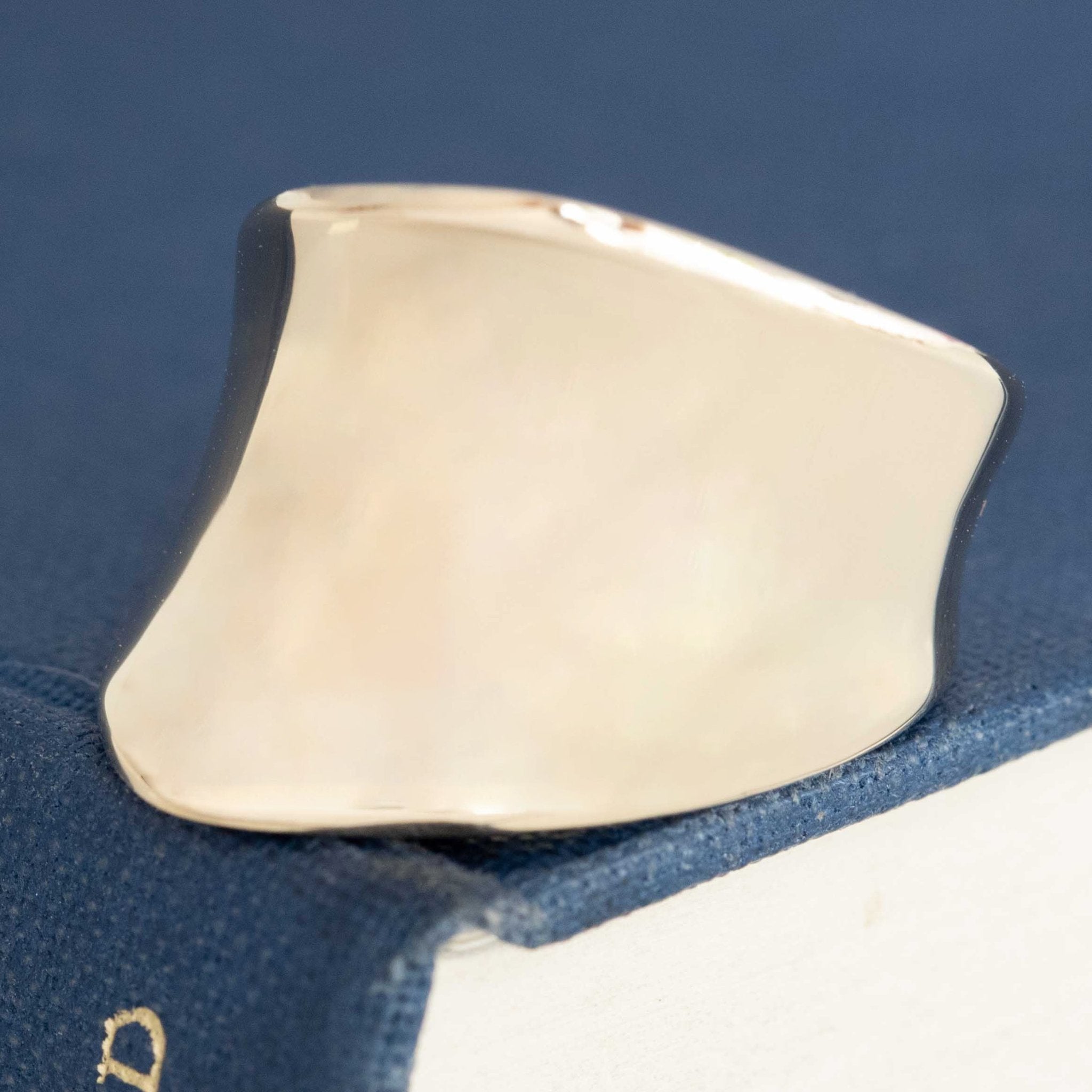 A chunky and abstract ring that is like wearing armor upon one's finger - we love how its' form is fluid but quite solid in make. A fun ring that is bold gold in all the ways.