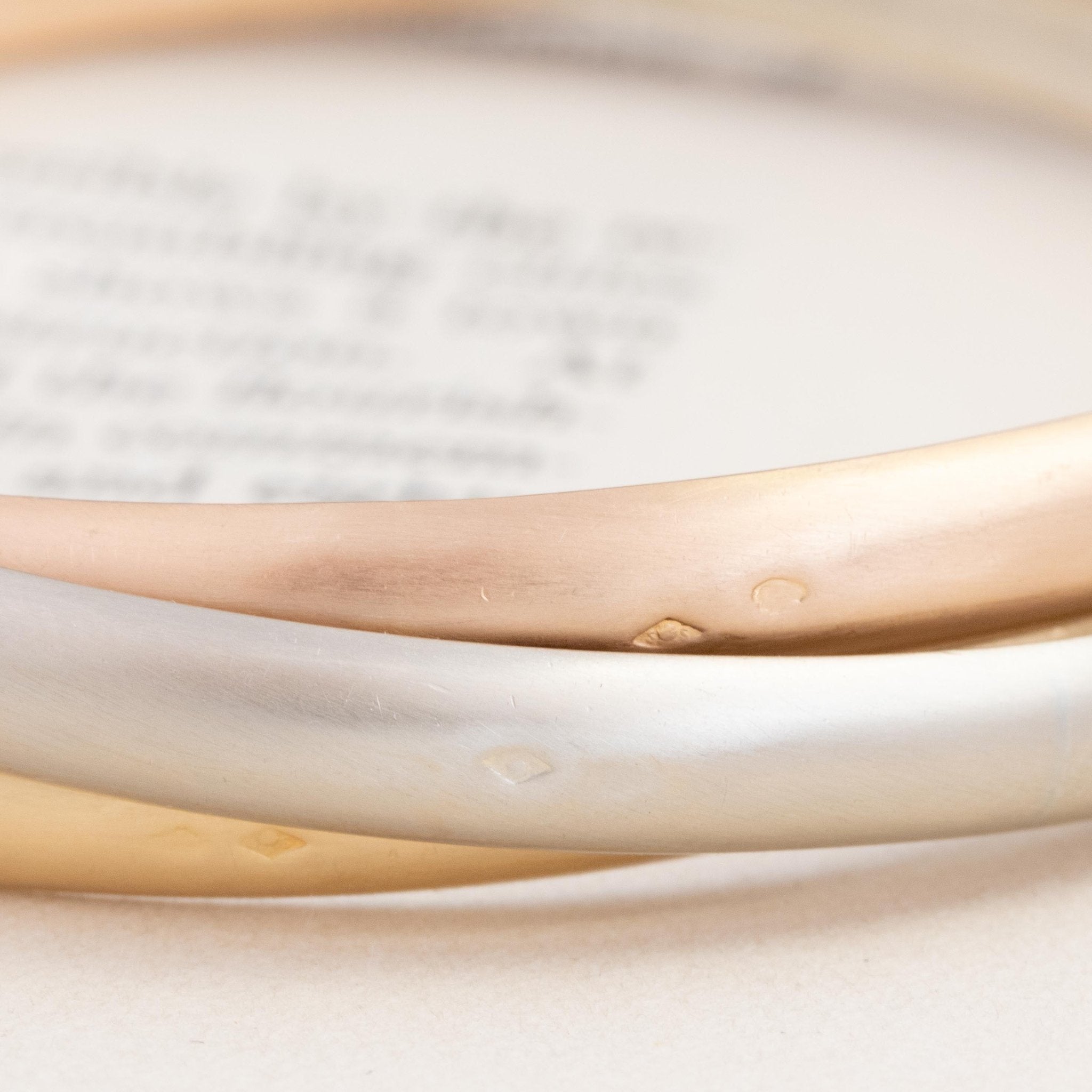 This 1900’s trinity bangle is an incredibly fun find - from her wider make to the satin finish, we find it to be one of the more special ones we’ve found in recent years. With a wonderful heft and feel on the skin, this Cartier classic is one of those jewels you will never want to take off.