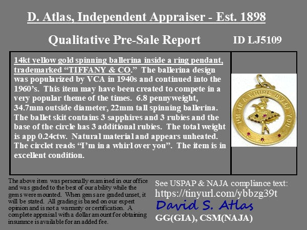 Vintage Gemstone Ballerina "I'm In A Whirl Over You" Spinning Pendant, by Tiffany & Co.