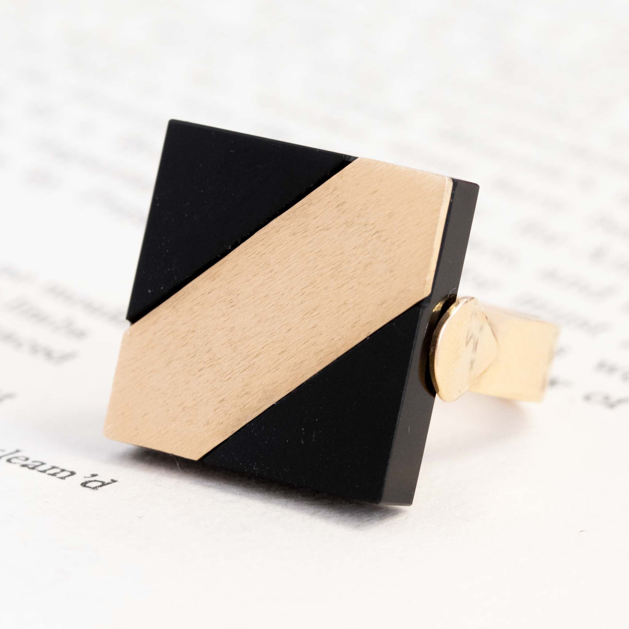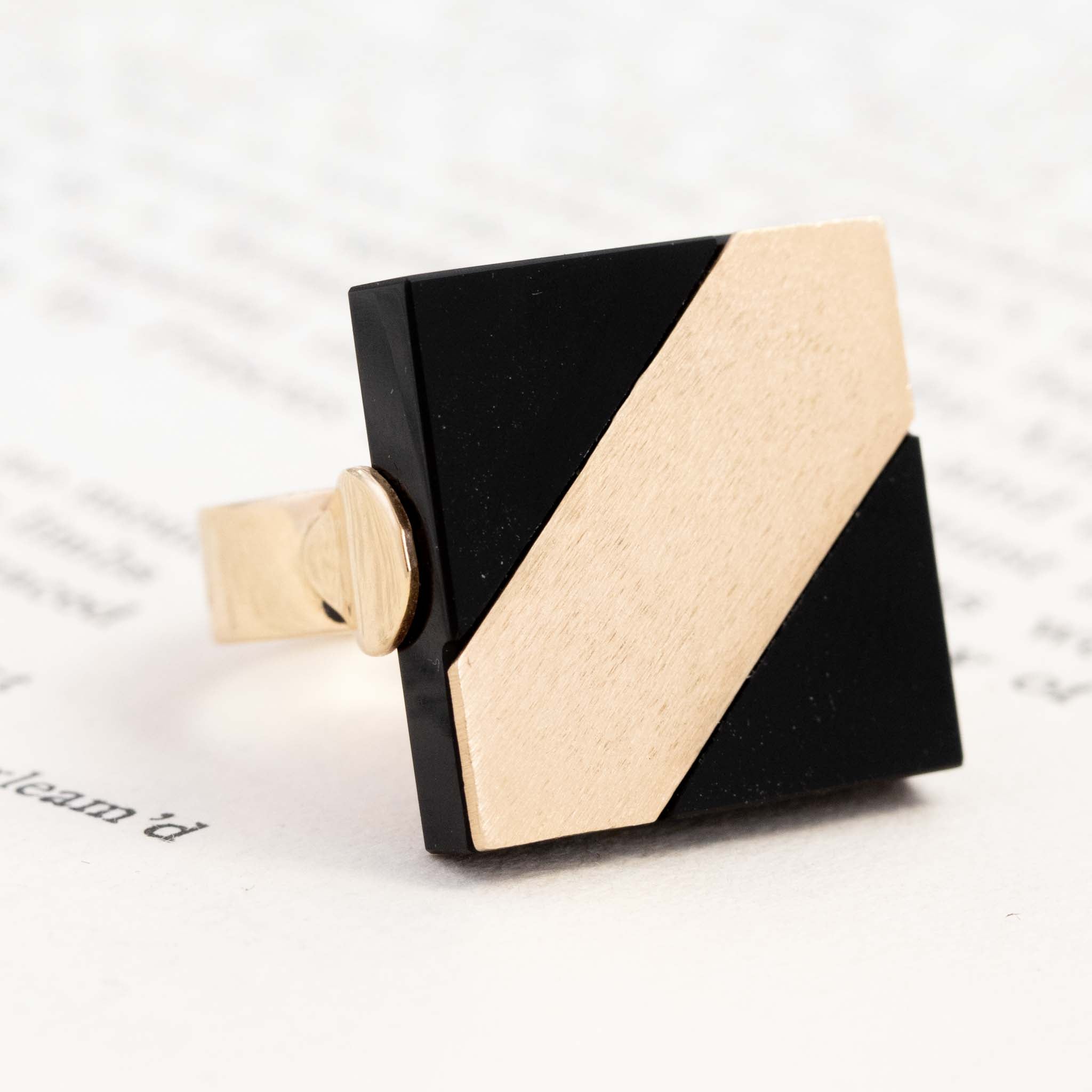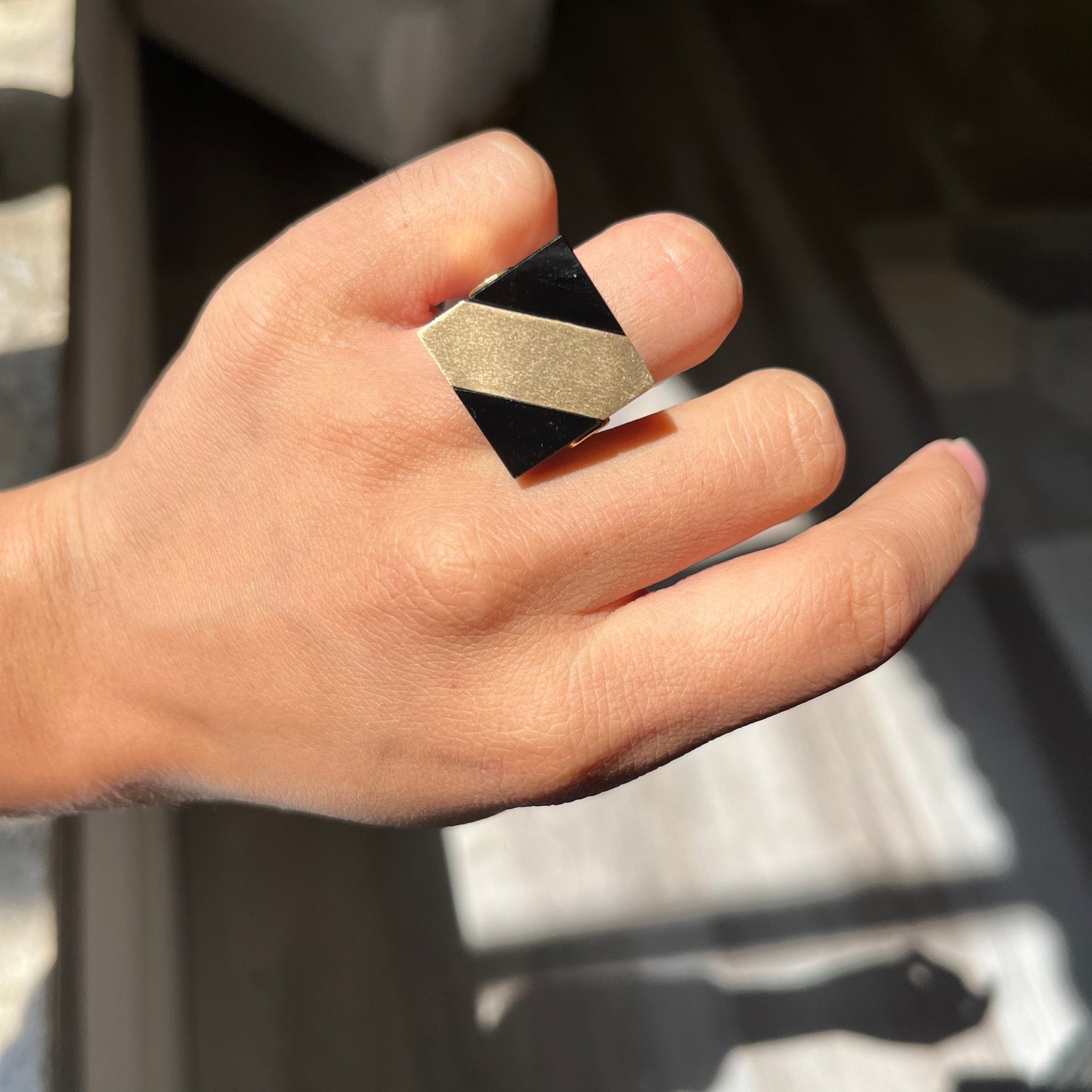 How chic is she? The perfect right hand ring, and one which will complement any outfit perfectly. The black and gold color combo is, of course, a classic. A great collector's piece which speaks of the 60s and 70s beautifully.
