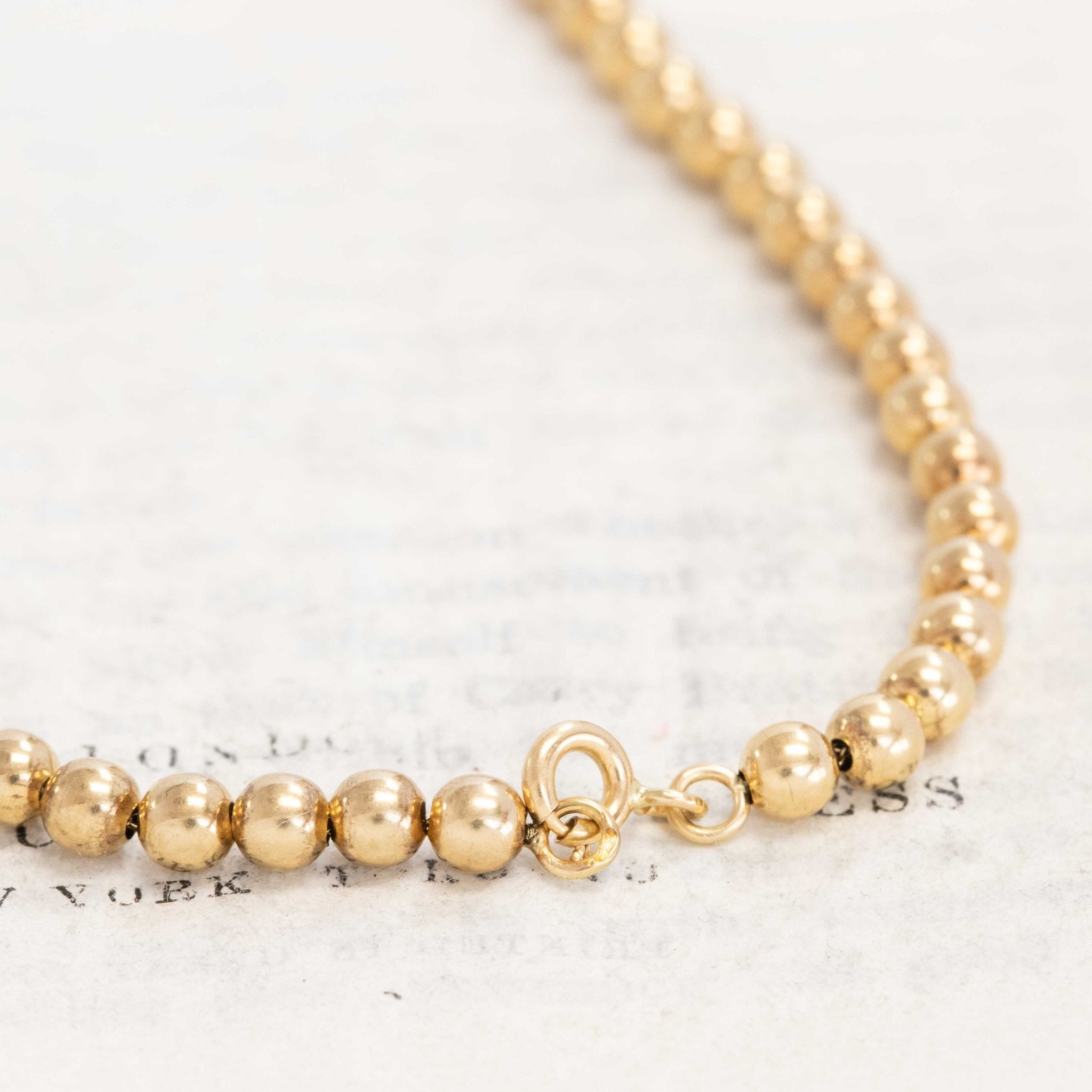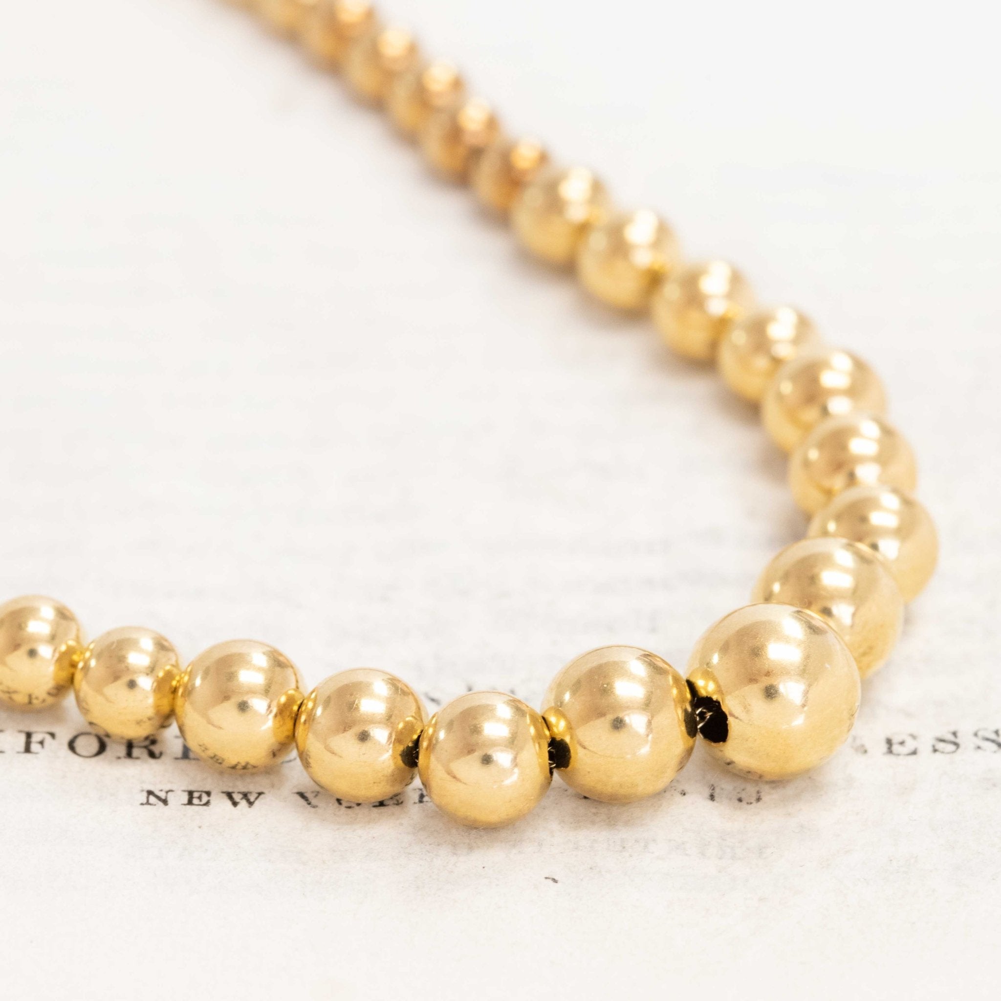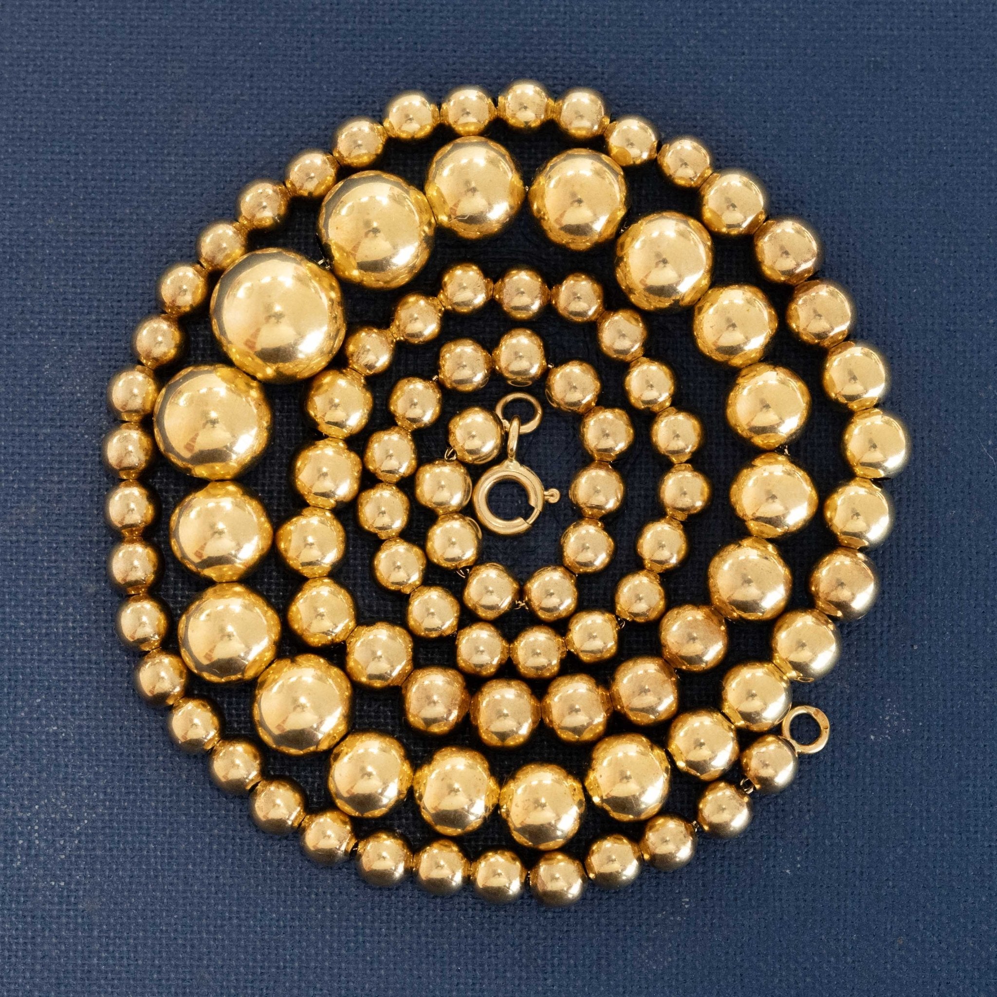 A gold bead strand, graduated in size and French-made! We love these in any context you’d expect pearls - because who doesn’t love a yellow gold moment? In a great size and scale that falls beautifully on the décolletage. She's pretty special!