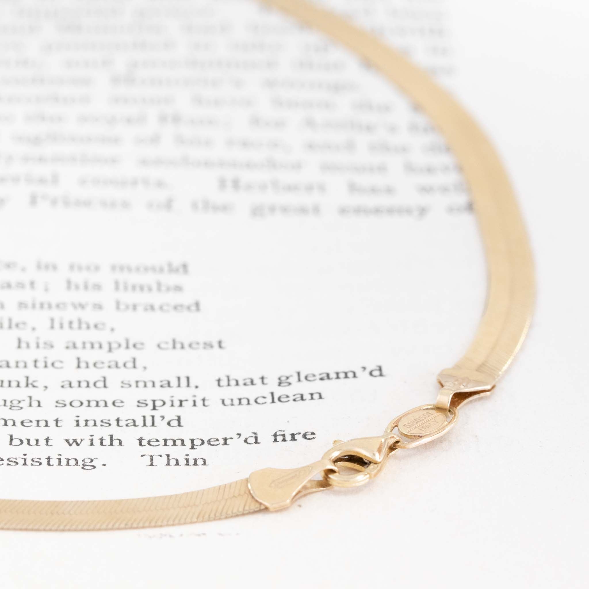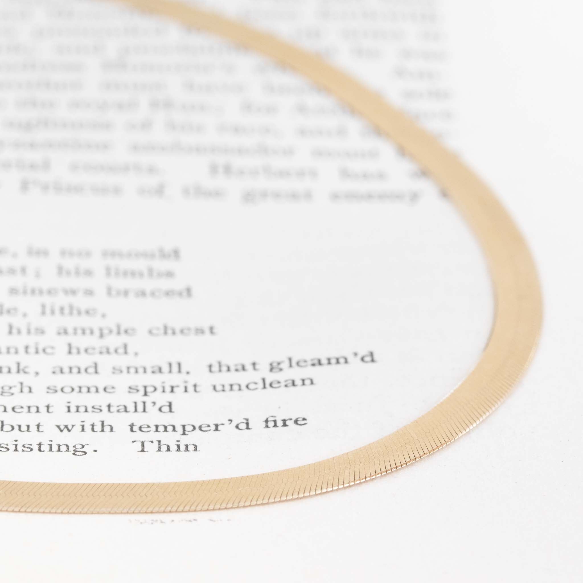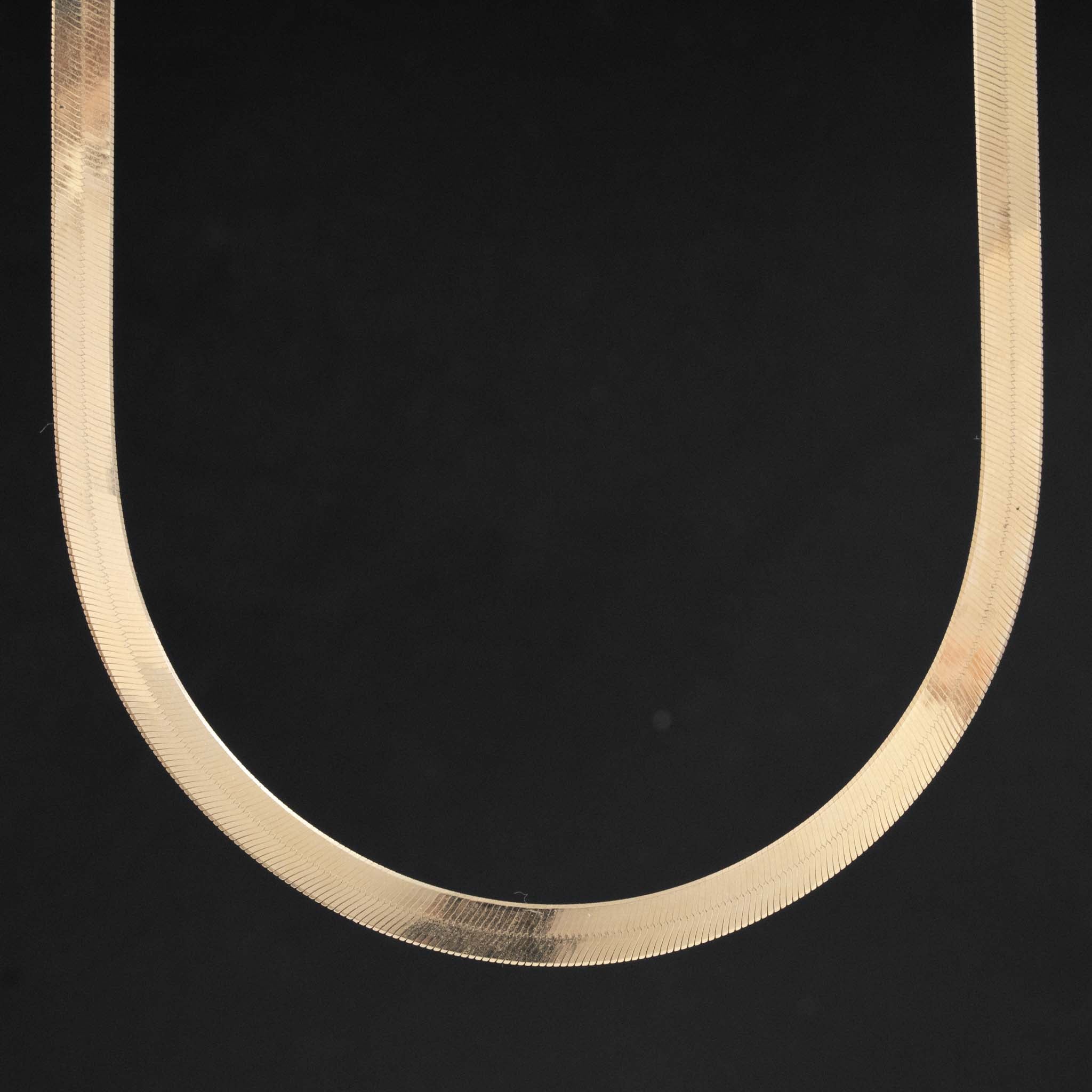 The 80s/90s are back in a big way with this beautiful herringbone chain. Lays nice and flat on the decolletage - perfect to wear solo, or or layered with other pieces.