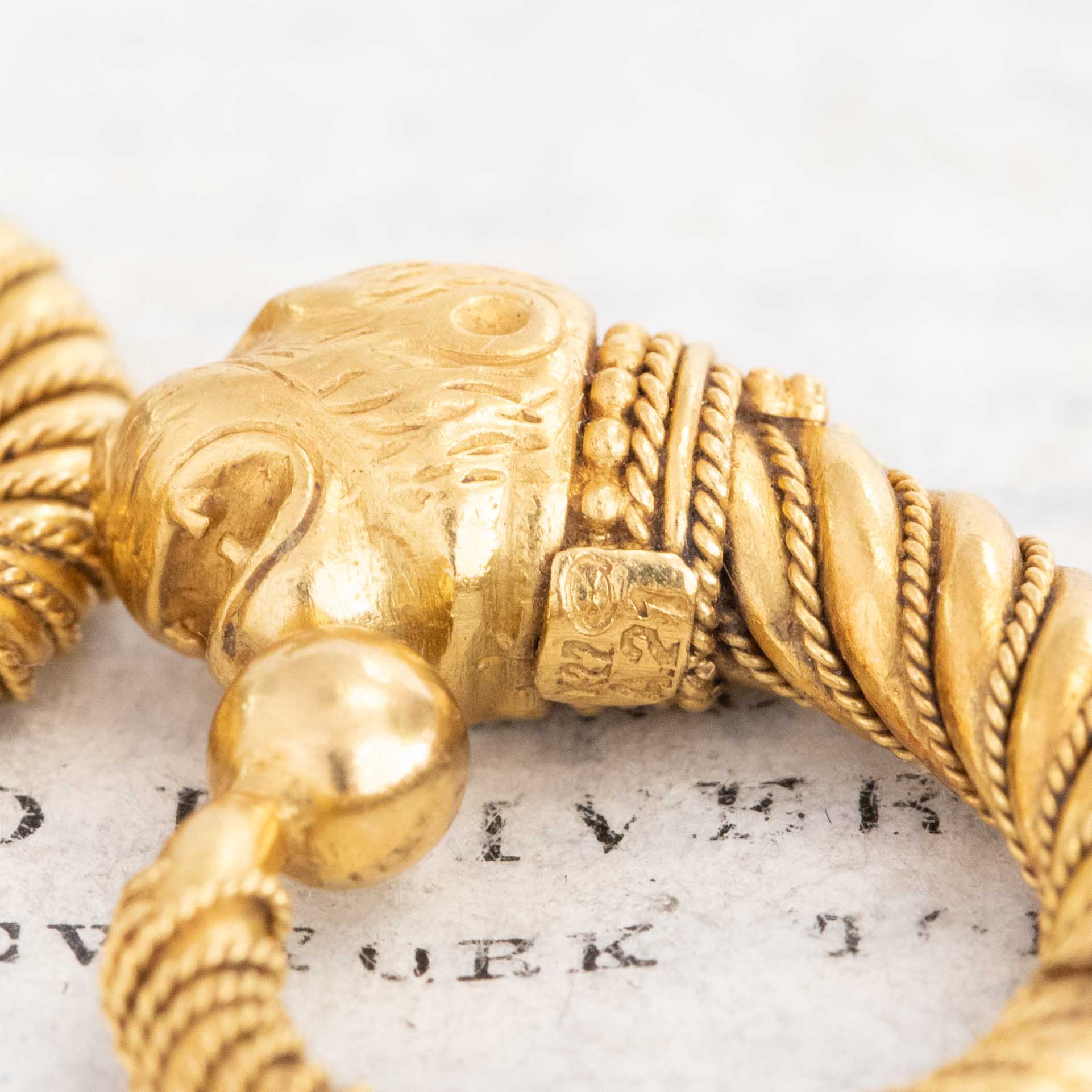 Vintage High Karat Gold Lion Head Hoop Earrings