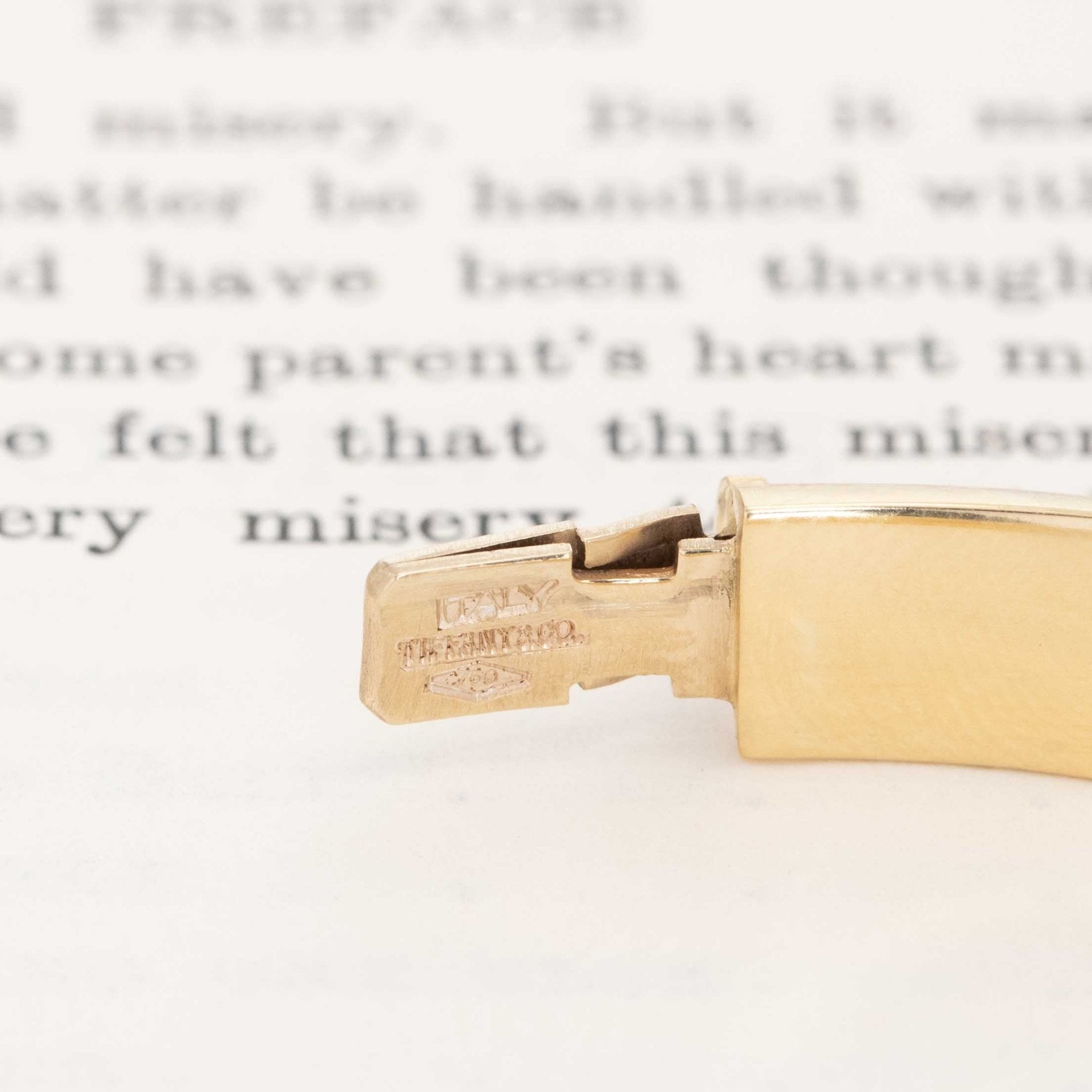 A classic Tiffany and Co bangle in a tube-like form, delicious on the wrists and an excellent daily piece with craftsmanship the house is known for! Buttery smooth and hinged, so quite easy to take on and off.