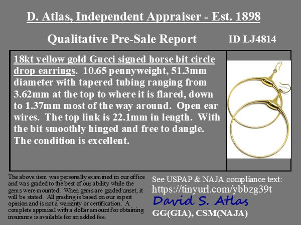 Sexy, flirty and fun - as only Gucci can! Gorgeous oversized horse bit motif hoop earrings, circa 1980s, with that unmistakable Gucci signature horsebit motif in rich yellow gold. Will transition beautifully from day to night!