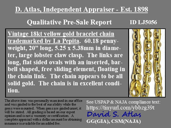 We love us a great looking and unique chain - who doesn't? This one’s got presence — bold, sculptural, and definitely Italian. Crafted by La Pepita, this vintage 18K gold chain has a weight and rhythm that just feels as good as it looks. Each link is a little work of art: rounded discs framed by gold bars, all connected and perfectly balanced.