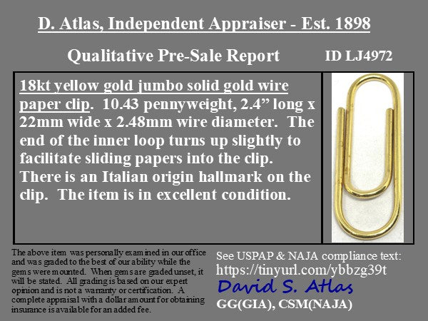 One of the biggest paper clips we have the pleasure of owning of late - a great collector's piece if you are looking for both form an function! She is a chic chain extender, a charm holder, a money clip, a lapel pin - so many possibilities! Such delicious weight too.