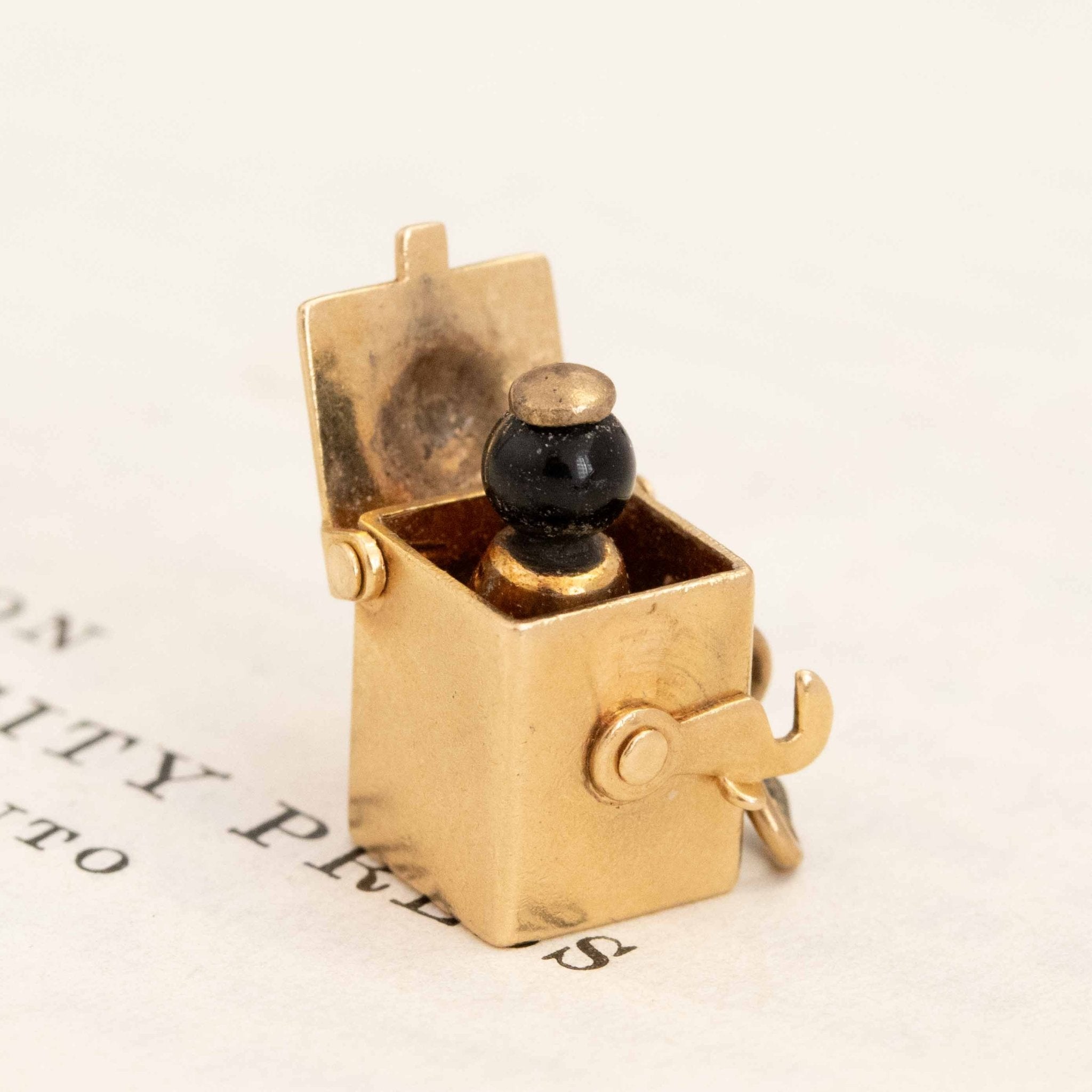 Your classic and highly sought after Jack in the Box charm, and fully functional too! The box has a fully operational lid, opening up to reveal Jack.