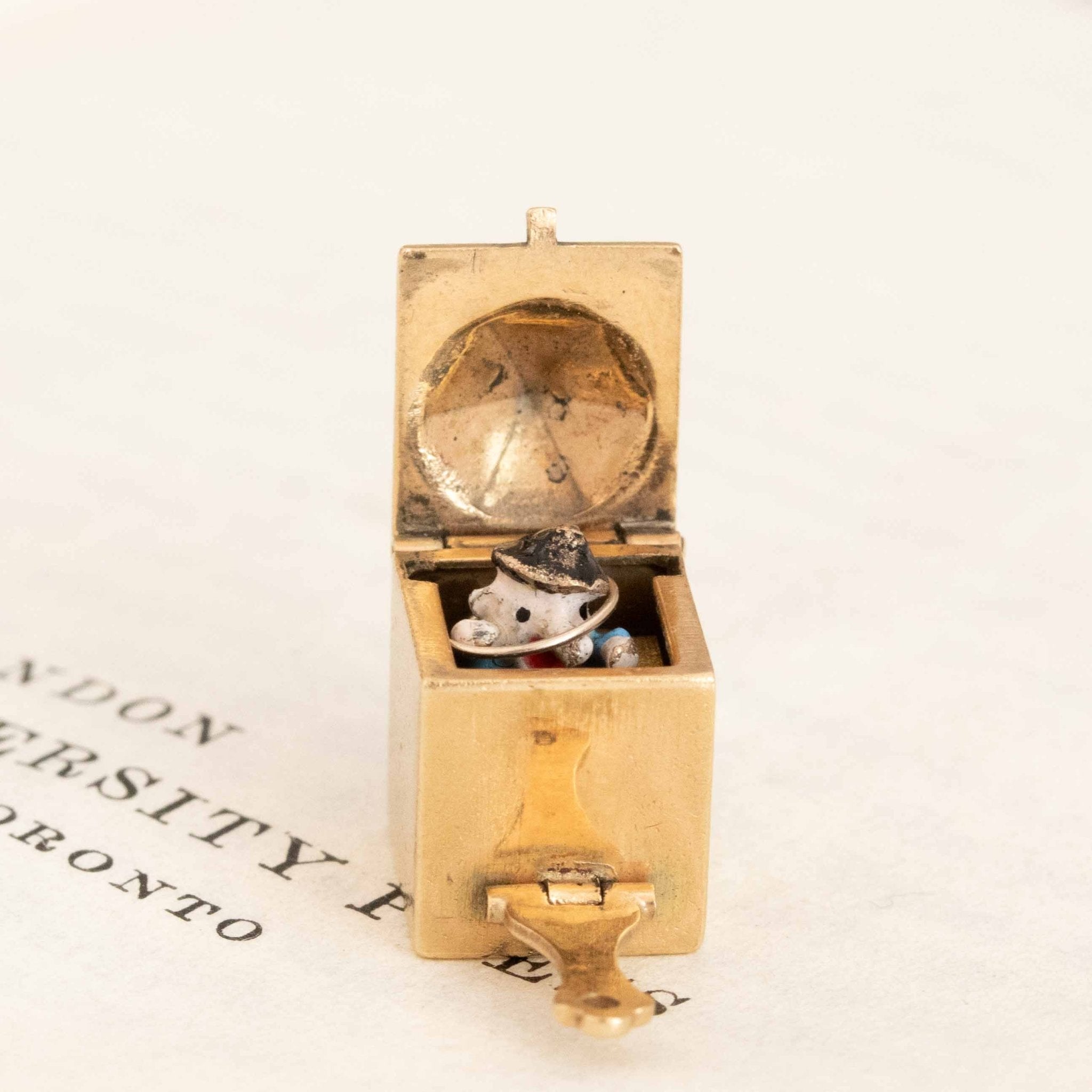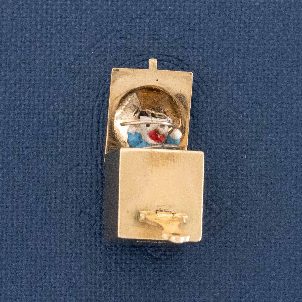 Pretty rare find, this Jack in the Box charm is fully functional and opens up to reveal a boy rendered in enamel. Too adorable for words!