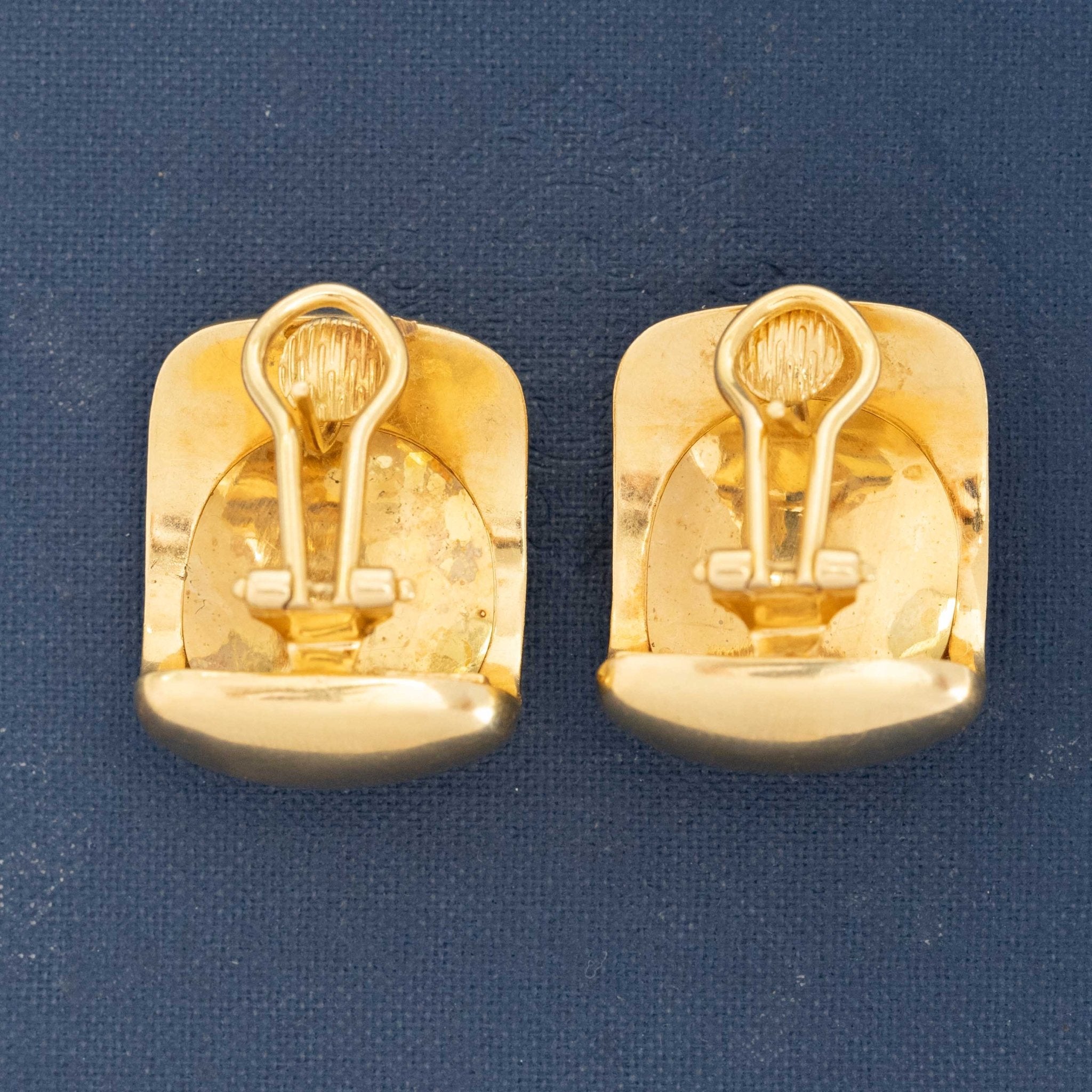 These guys are the perfect bold gold earring, a great throw back to the 80s, fit with post backs and omega clips to reinforce the most easy, comfortable wear. We love 'em worn with a simple T shirt or out on the town, and that rich gold tone + patina is just the best!