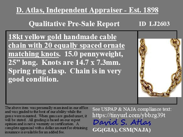 Vintage Knot Chain, 18kt Yellow Gold 25"
