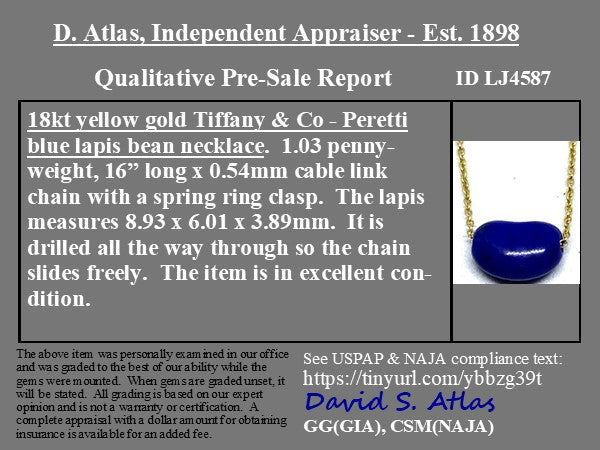 Vintage Lapis Lazuli Bean Pendant by Elsa Peretti for Tiffany & Co.