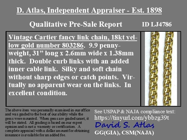 A vintage Cartier chain in a slender but present link and a great length to boot! We’d love to see this baby worn with a big antique pendant, or perhaps layered with your other favorite old chains.