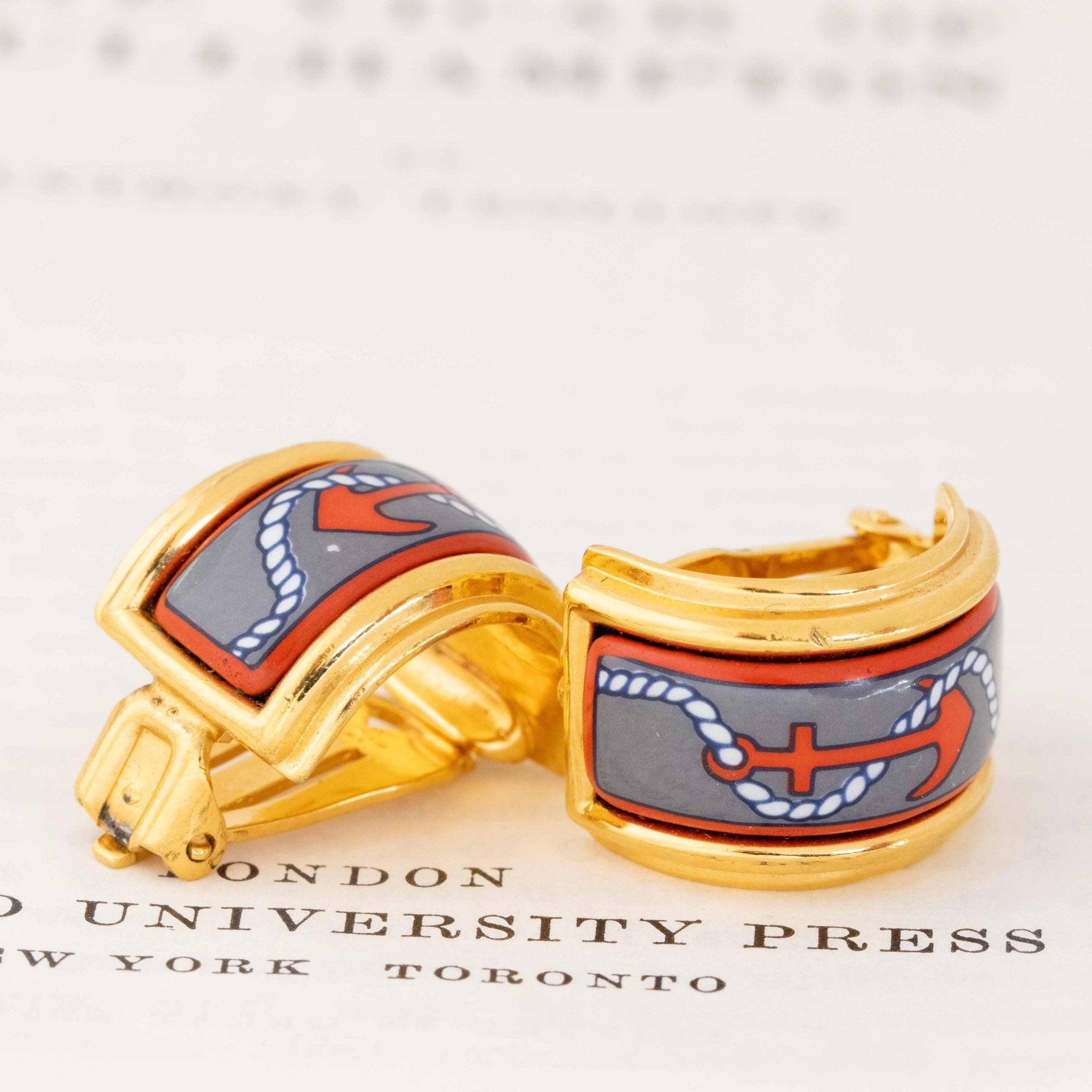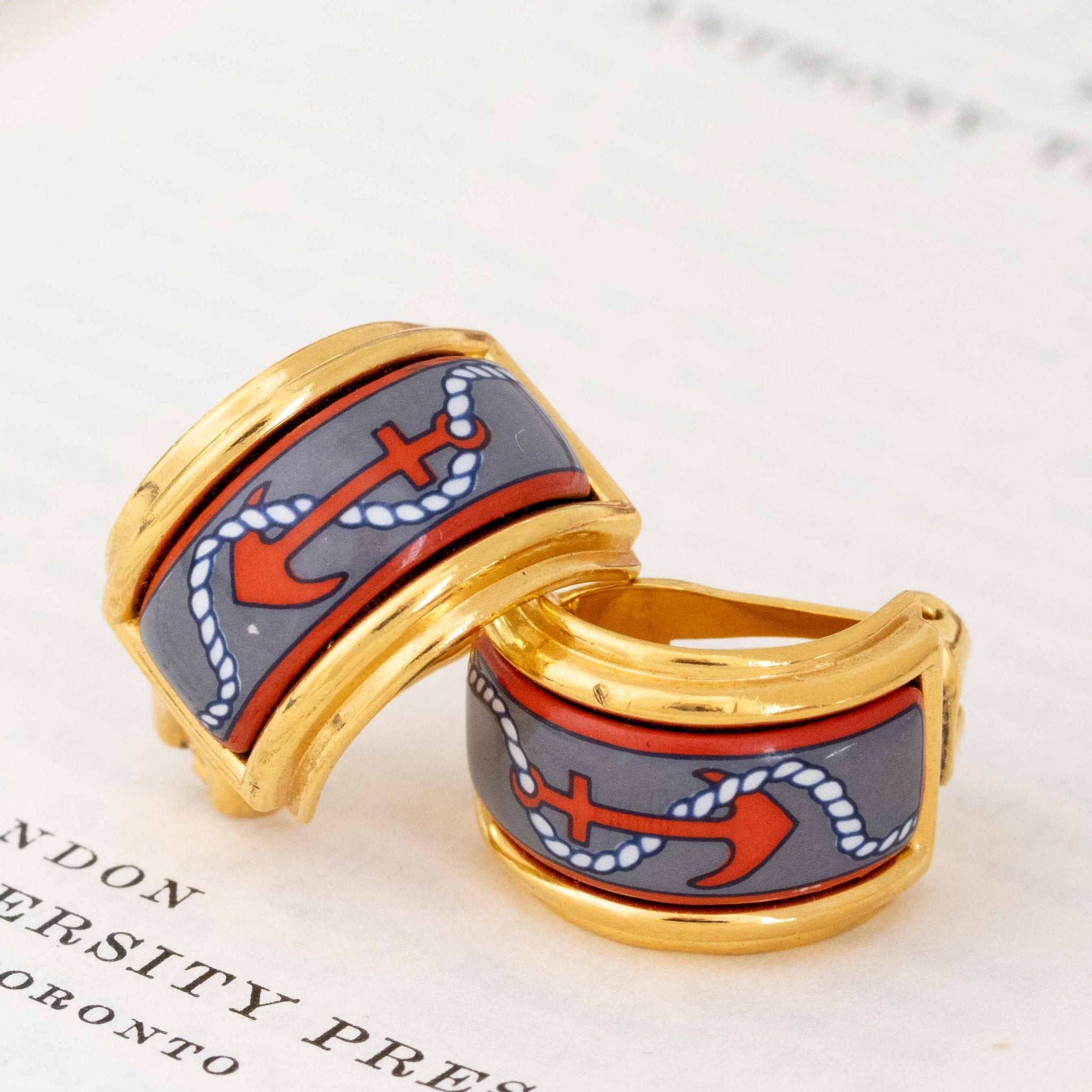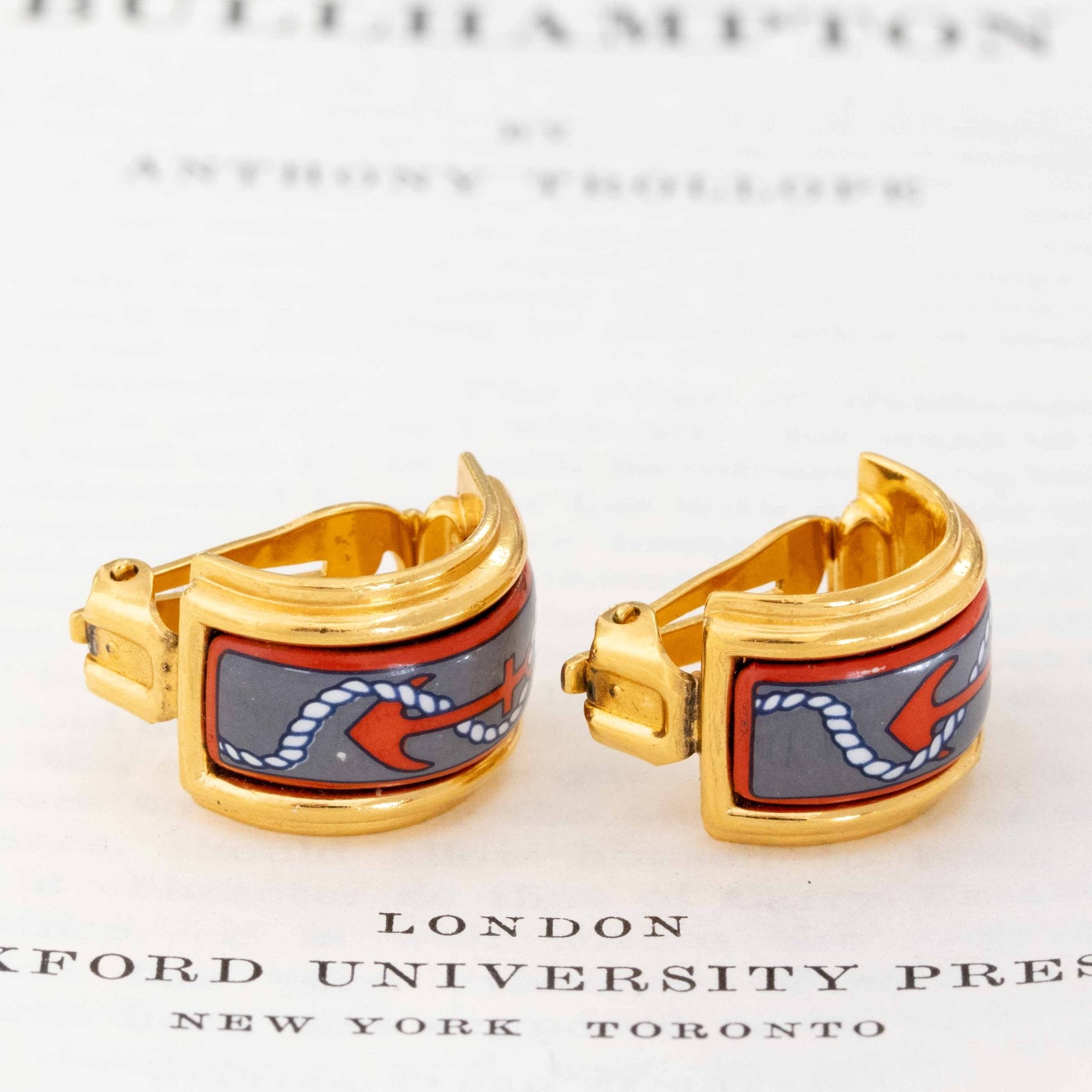A sweet pair of enamel and gold plate earrings from Hermes with beautiful color and proportion! Perfect for fans of Hermes, nautical motif jewels, or even a younger loved one starting their jewelry collection.